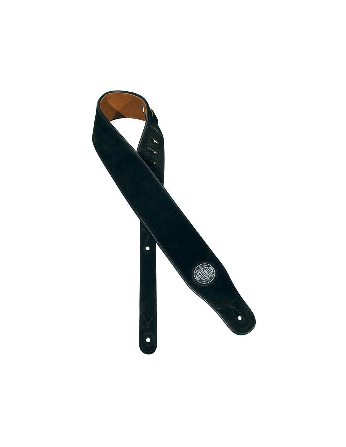 guitar strap, natural back, black suede