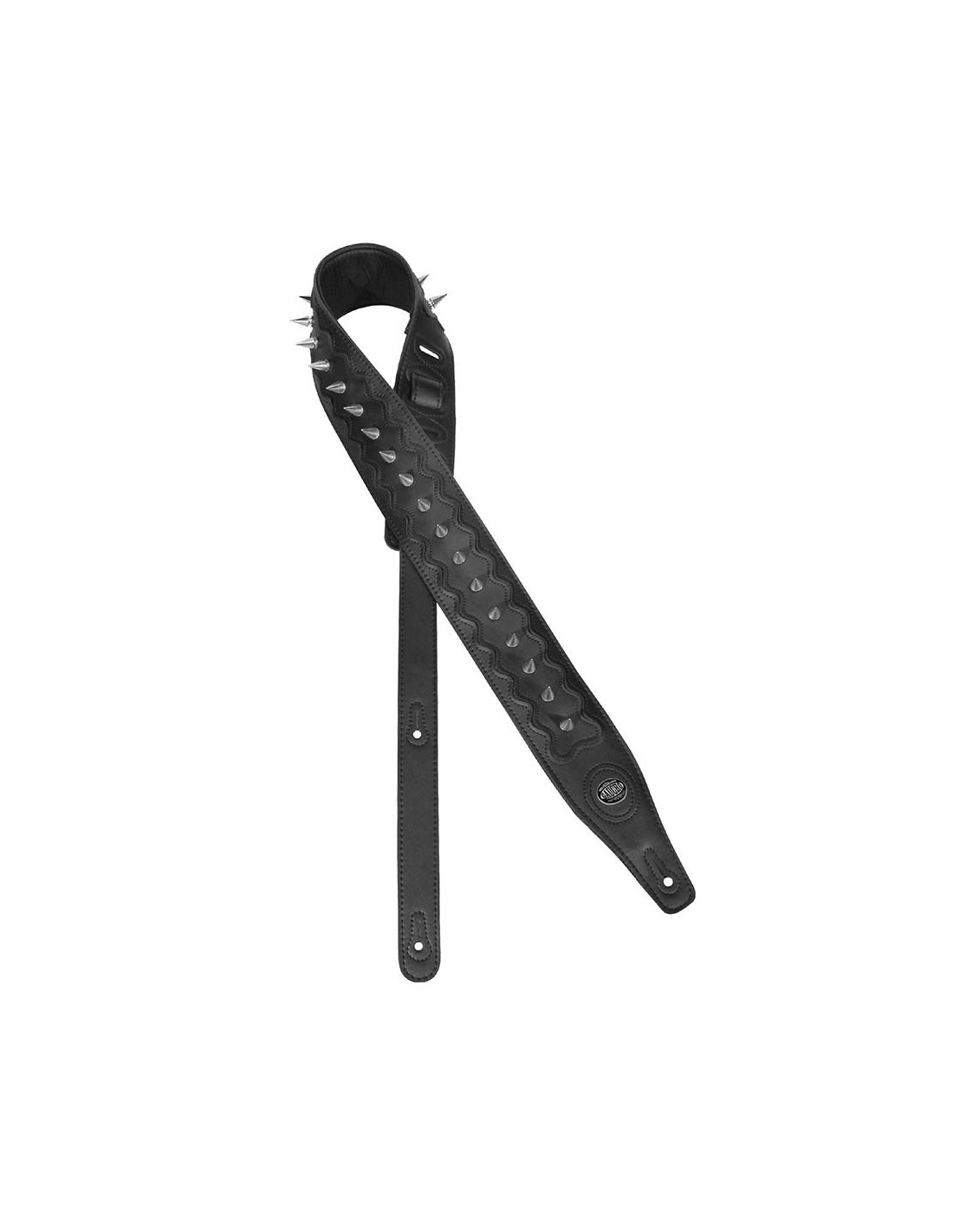 guitar strap, top quality leather, black, with chrome spikes