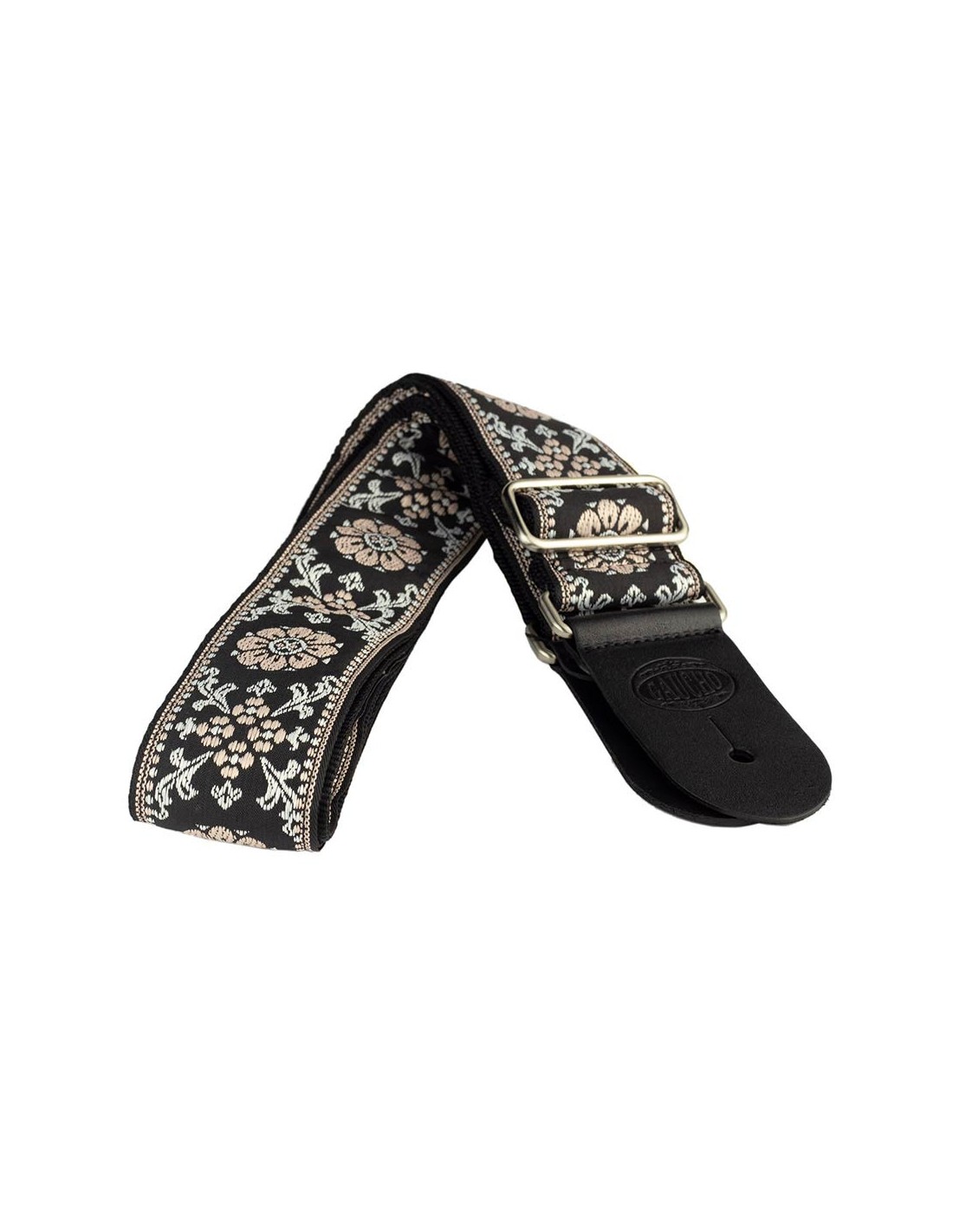 guitar strap, 2” jacquard weave, leather slips, multi colors