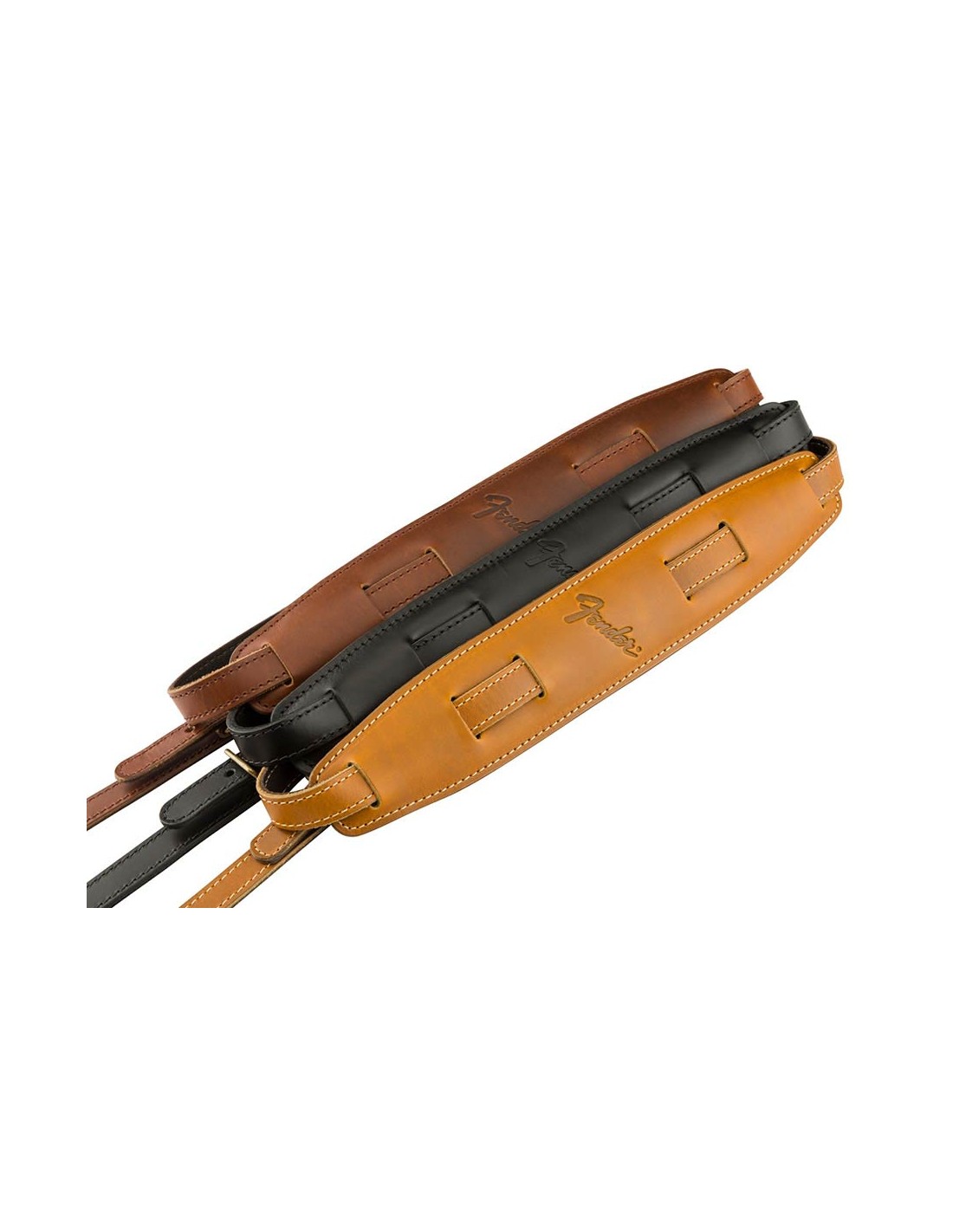 Featuring smooth, premium top leather with a soft padded leather backing, the Mustang saddle strap is a modern interpretation of our classic vintage Fender design. Full-grain, rich leather undertones ensure this strap only gets better with time while the fixed brass metal keeper secures your straps tail so it doesnt hang once adjusted. Available in both standard and long lengths to fit players of any stature.