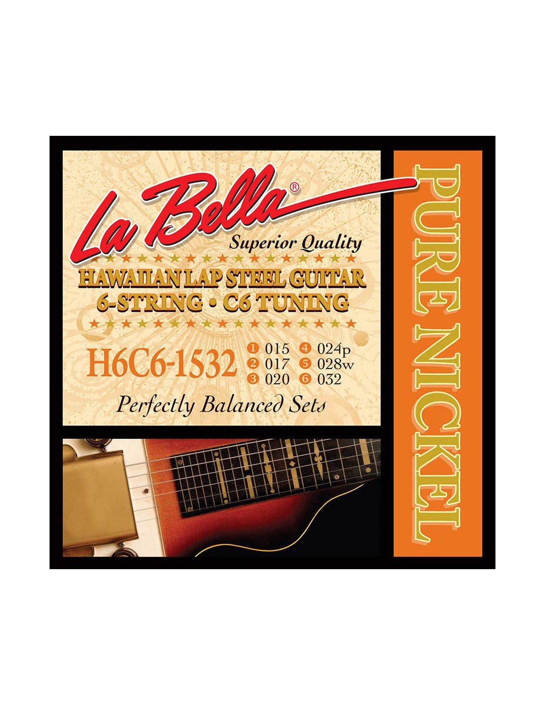 La Bellas Pure Nickel Hawaiian Lap Steel Guitar Strings are ideal for all forms of solid body and hollow body lap steel guitars, in addition to resophonic, lap slide and Weissenborn® guitars. As a part of La Bellas Pure Nickel Series, these sets are made with 100% pure nickel, producing a warm tone compared to a bright tone characteristic of nickel-plated strings.