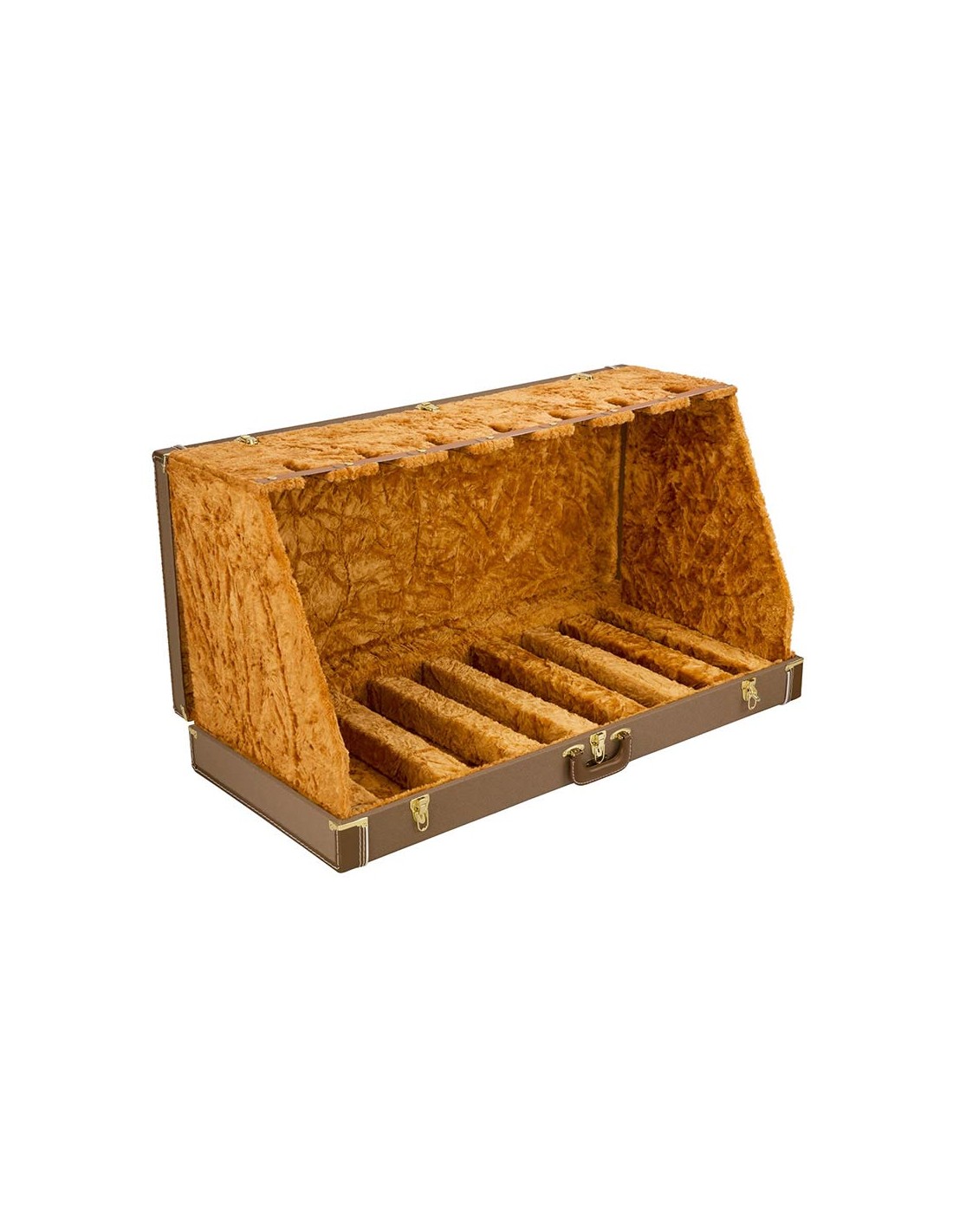 Fender Instrument Case Stands are a great way to display and protect multiple instruments. This case stand looks like a traditional case but easily turns into a stage-worthy guitar stand. Crafted with road-reliable materials, this 3-ply hardshell wooden case boasts a vinyl-wrapped steel carry handle and steel latches. The soft, crushed-acrylic plush interior lining ensures your guitars remain scratch and damage-free.