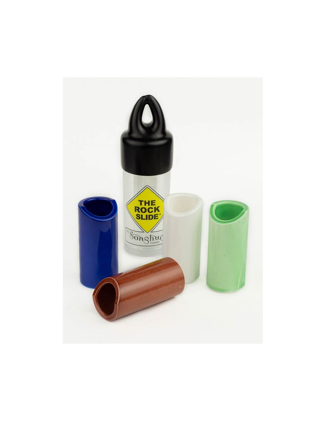 Ceramic Rock Slides have an ultra hard/smooth finish similar to glass but produce more sustain and low end since they outweigh the glass, and even our brass slides.