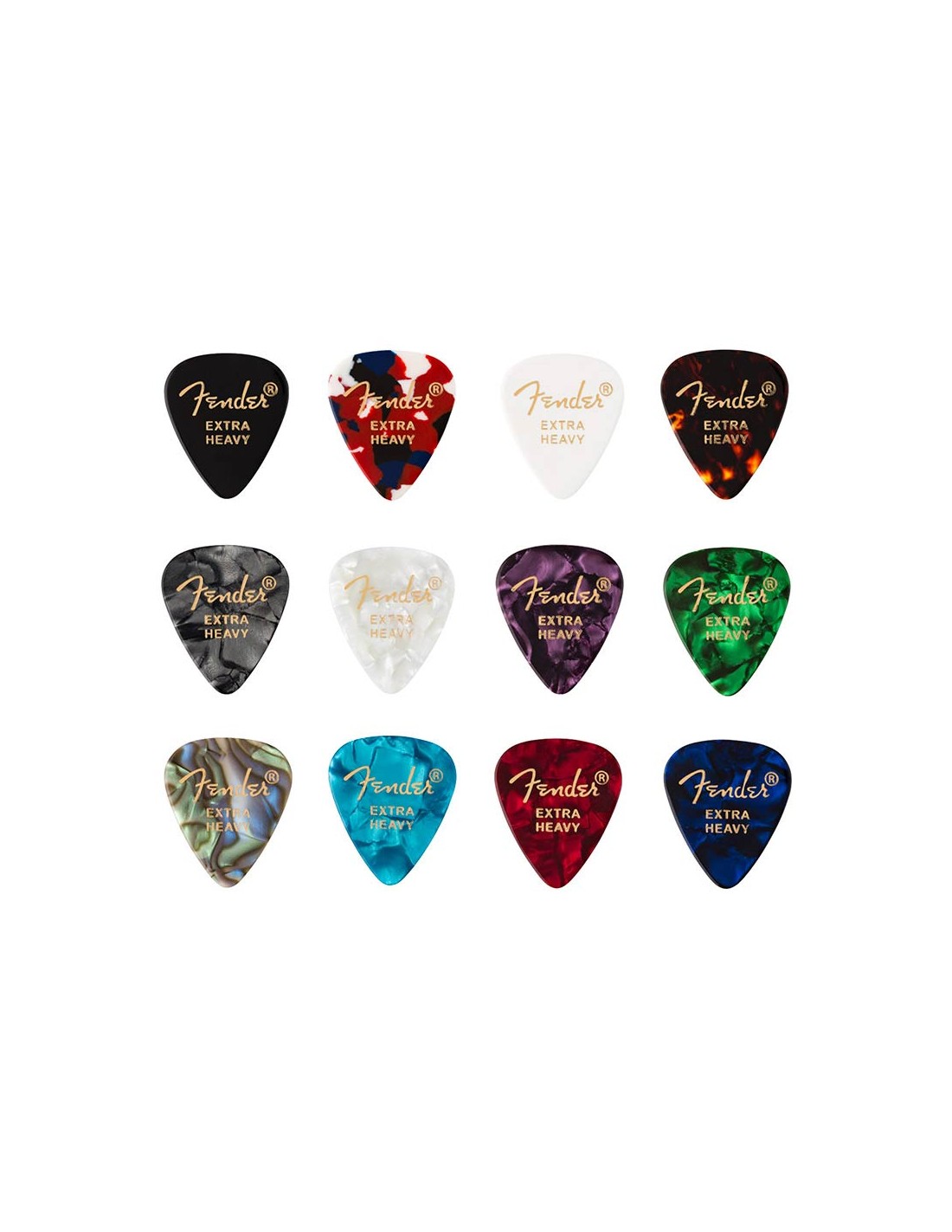 The traditional 351 shape, our most popular pick design, is a perfect accessory for players of versatile styles and techniques. This twelve-pack of picks contains one crafted in each of these colors: Red Moto, Black Moto, White Moto, Blue Moto, Ocean Turquoise Moto, Green Moto, Purple Moto, Abalone, Tortoiseshell, Confetti, Solid White and Solid Black.