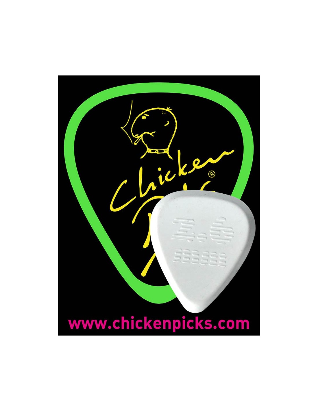 There is nothing finer or more reassuring than having your own special pick – that one that you always reach for because it plays so good! ChickenPicks® are designed to be that “go-to” pick from the get-go. Though the material is extremely durable, it does wear – just a little, and in just the right way. That’s why after a while, a ChickenPicks® comes to fit perfectly in your grip and in your musical style. This is a pick that will grow on you, and grow with you. The ChickenPicks® advantage is simply this: a hand-made, durable, and personal pick that brings a lot more of YOU and your character into the music you play. This is something that an average, thin, throw-away guitar pick can never offer.