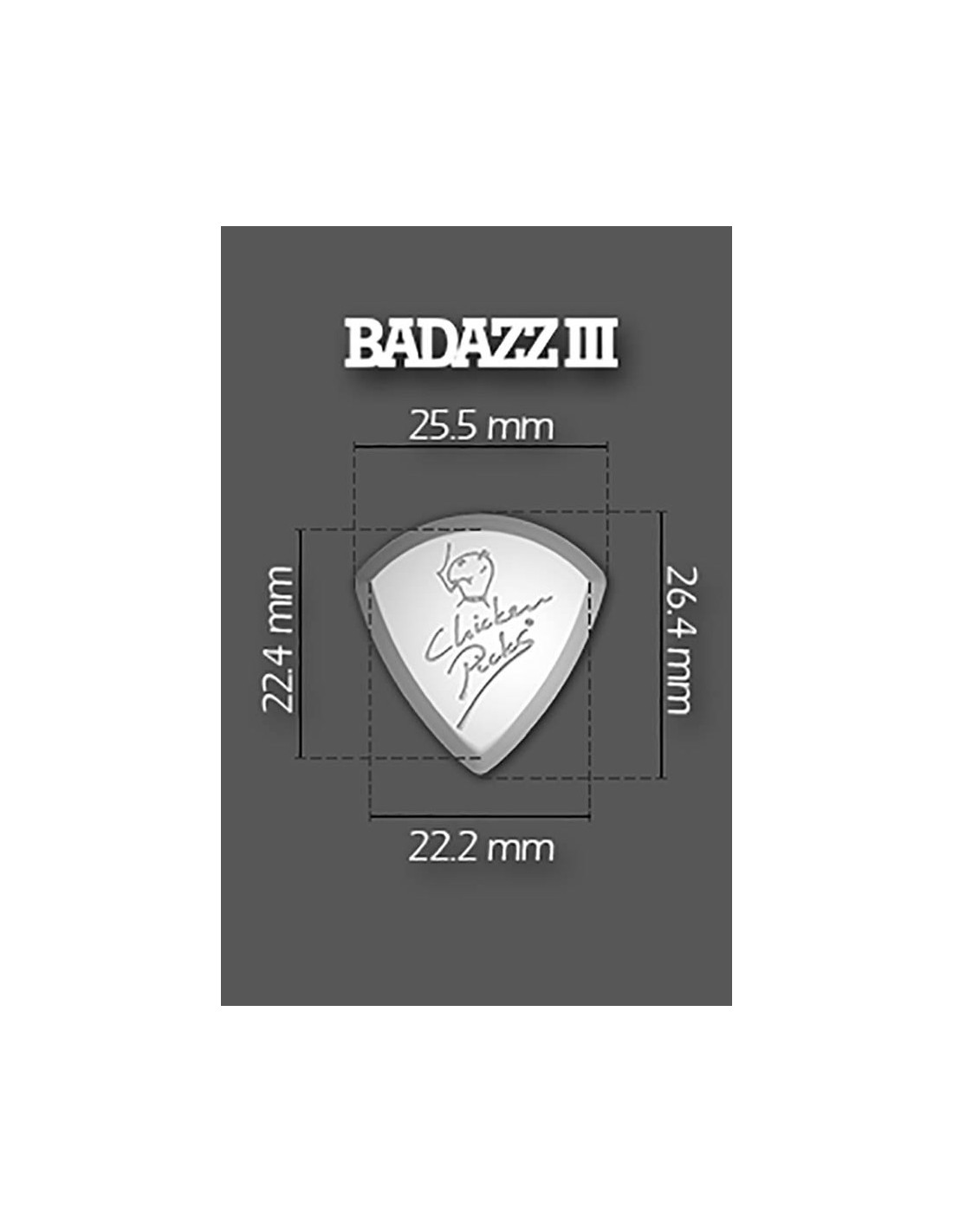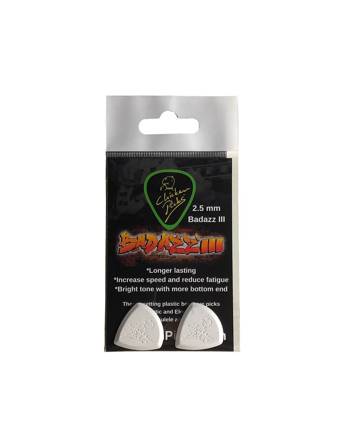Above all, it is the material that makes a ChickenPicks® unique. This is a high-quality and highly-durable thermosetting plastic. It is an extremely hard substance – hard enough to make ChickenPicks® last a long time, even for years of heavy use. But it is smooth, too… so smooth that a ChickenPicks® eliminates annoying and unwanted overtones when you play. Finally it is plastic ! The density of the material gives the ChickenPicks® a greater amount of mass. This mass, in combination with a precisely angled edge, makes a ChickenPicks® the perfect tool to improve your sound, and make your playing easier. The precisely angled edge of the ChickenPicks® is essential in creating the right tone and the perfect attack. Years of development have given the makers of ChickenPicks® the expertise needed to ensure that every ChickenPicks® is finished with just the right attack-angle to give you the greatest ease of playing and the strongest, clearest possible tone….!!