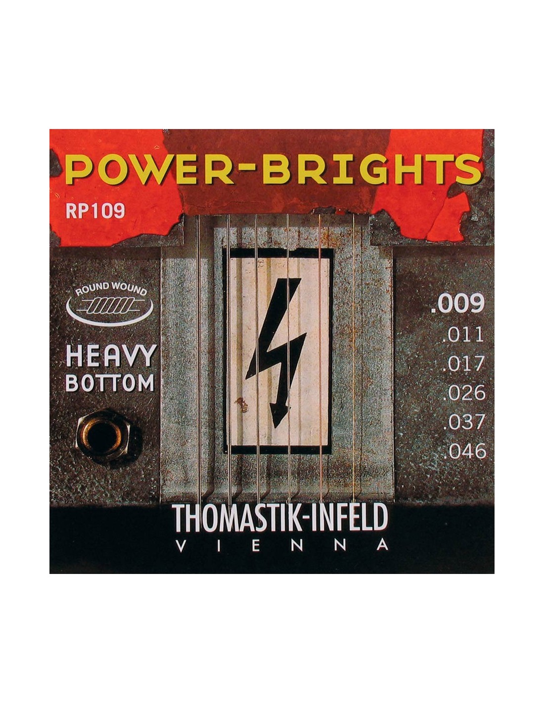 Roundwound Magnecore alloy on a flexible hexcore for a bright aggressive tone, extra long sustain and reduced playing effort. Designed to enhance harmonics and percussive effects like tapping. High output: POWER-BRIGHTS love distortion!