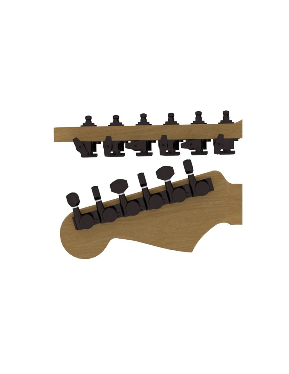 guitar tuner upgrade kit, 6 inline Grip-Lock, closed staggered black