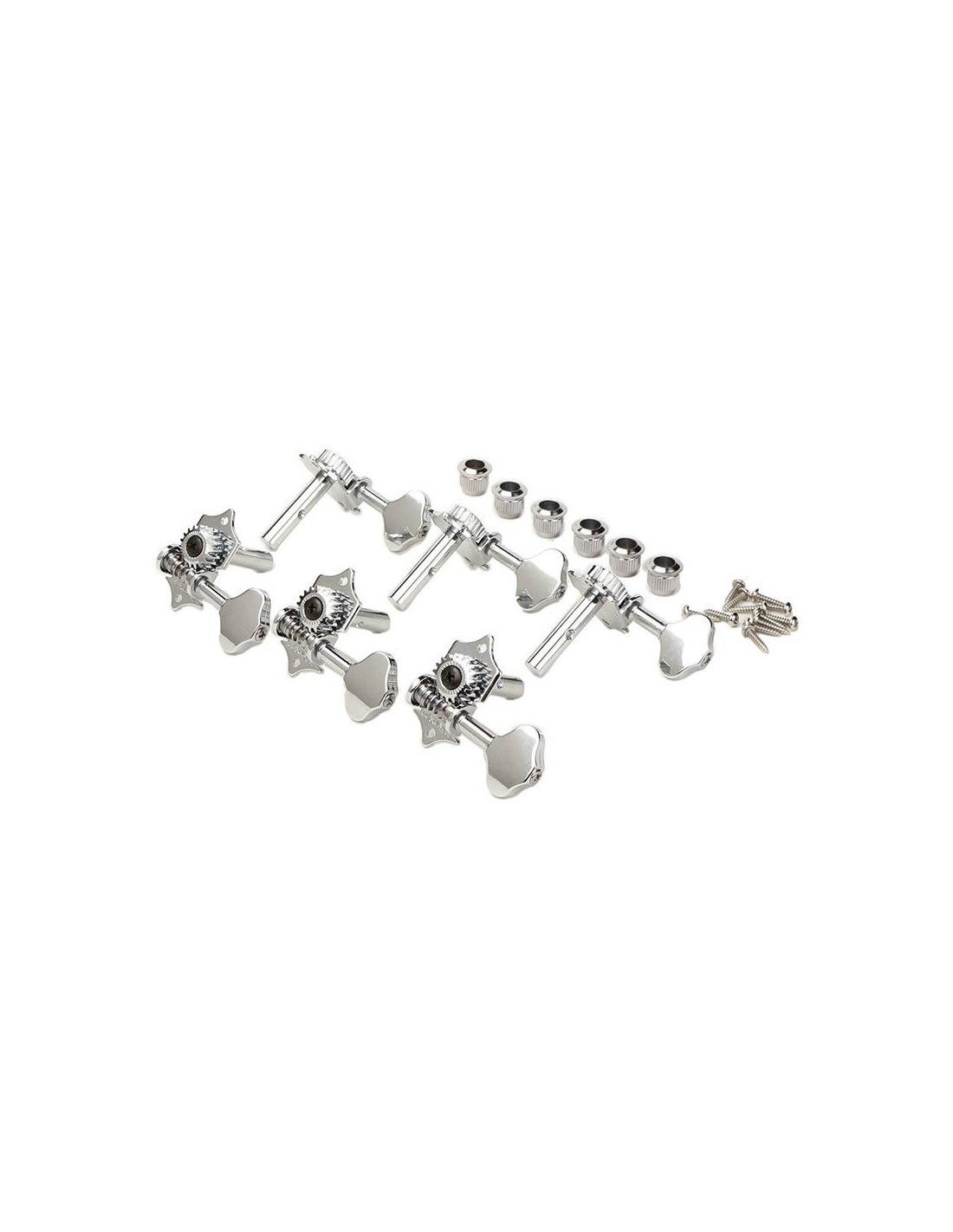 machine heads for gutar slotted headstock, open geared, 3x left+3x right, chrome, ratio 1:19