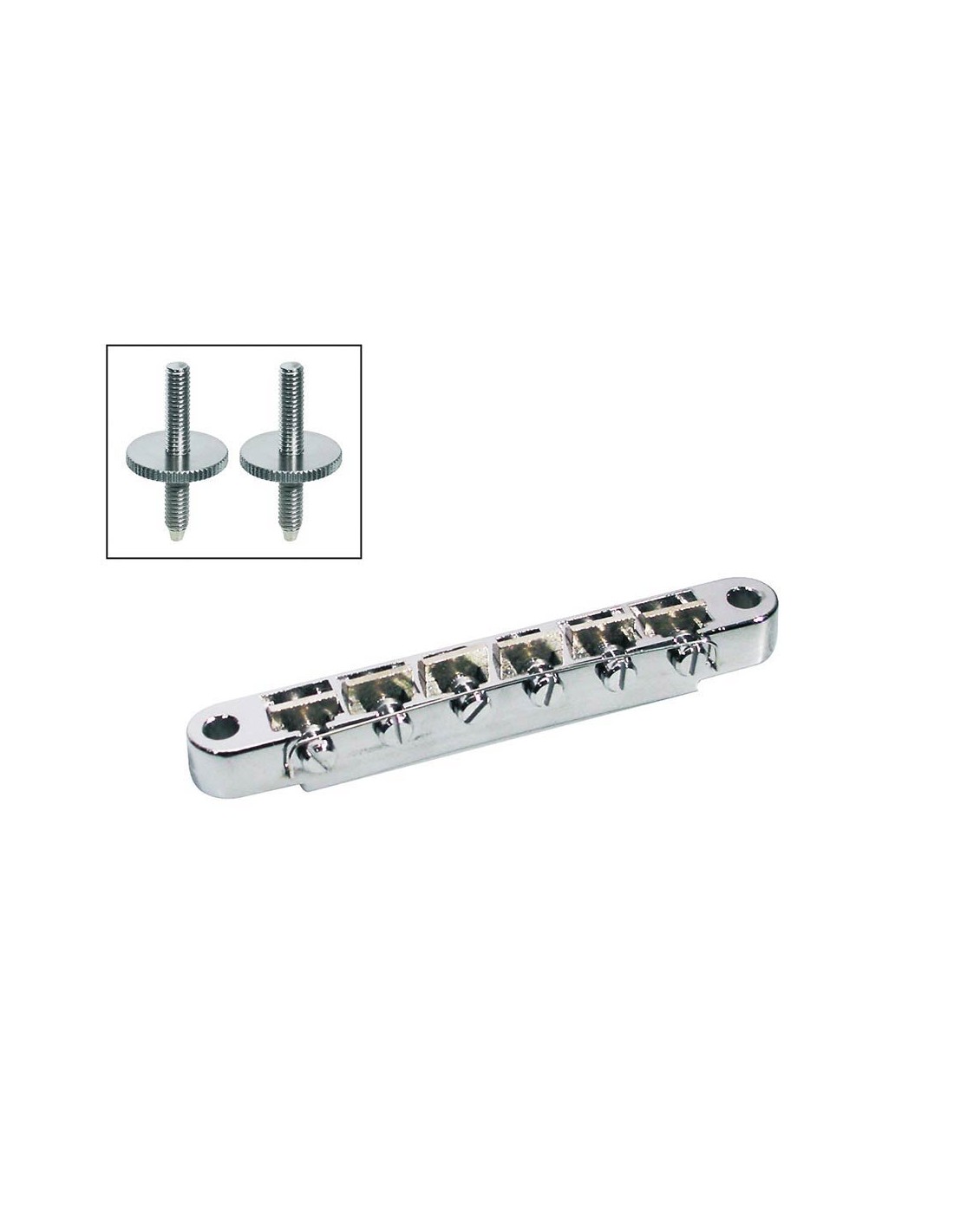 bridge for e-guitar, tune-o-matic, ABR-1, stud spacing 73,5mm, stud diam 4 mm, nickel