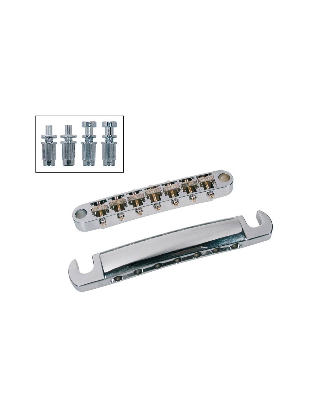 bridge and tailpiece set, 7-string, with studs, 16" radius, stringspacing 62,6mm, chrome