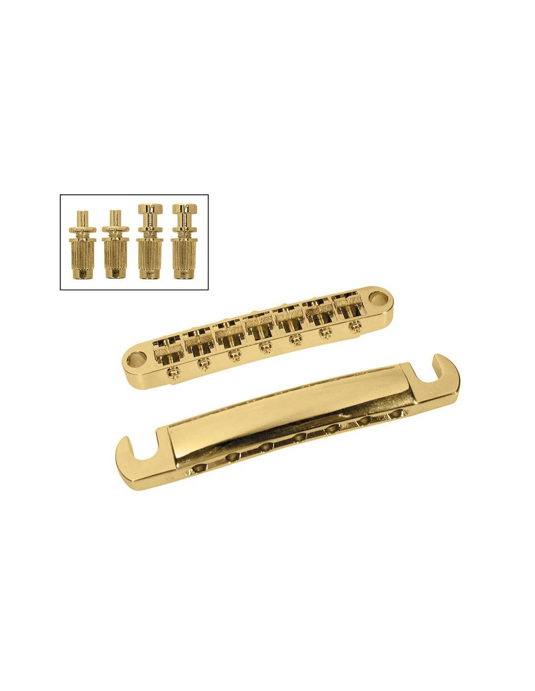bridge and tailpiece set, 7-string, with studs, 16" radius, stringspacing 62,6mm, goldplated