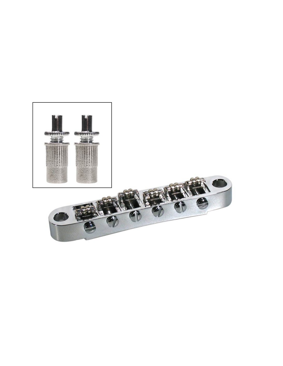 bridge for e-guitar roller bridge model, with studs, chrome, 15" radius, M8 thread bolts