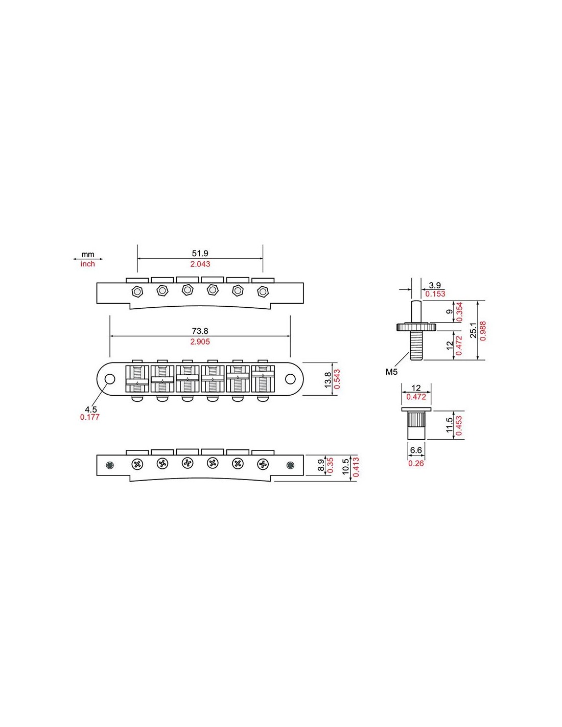 - 51.9 mm (2.043") string spacing