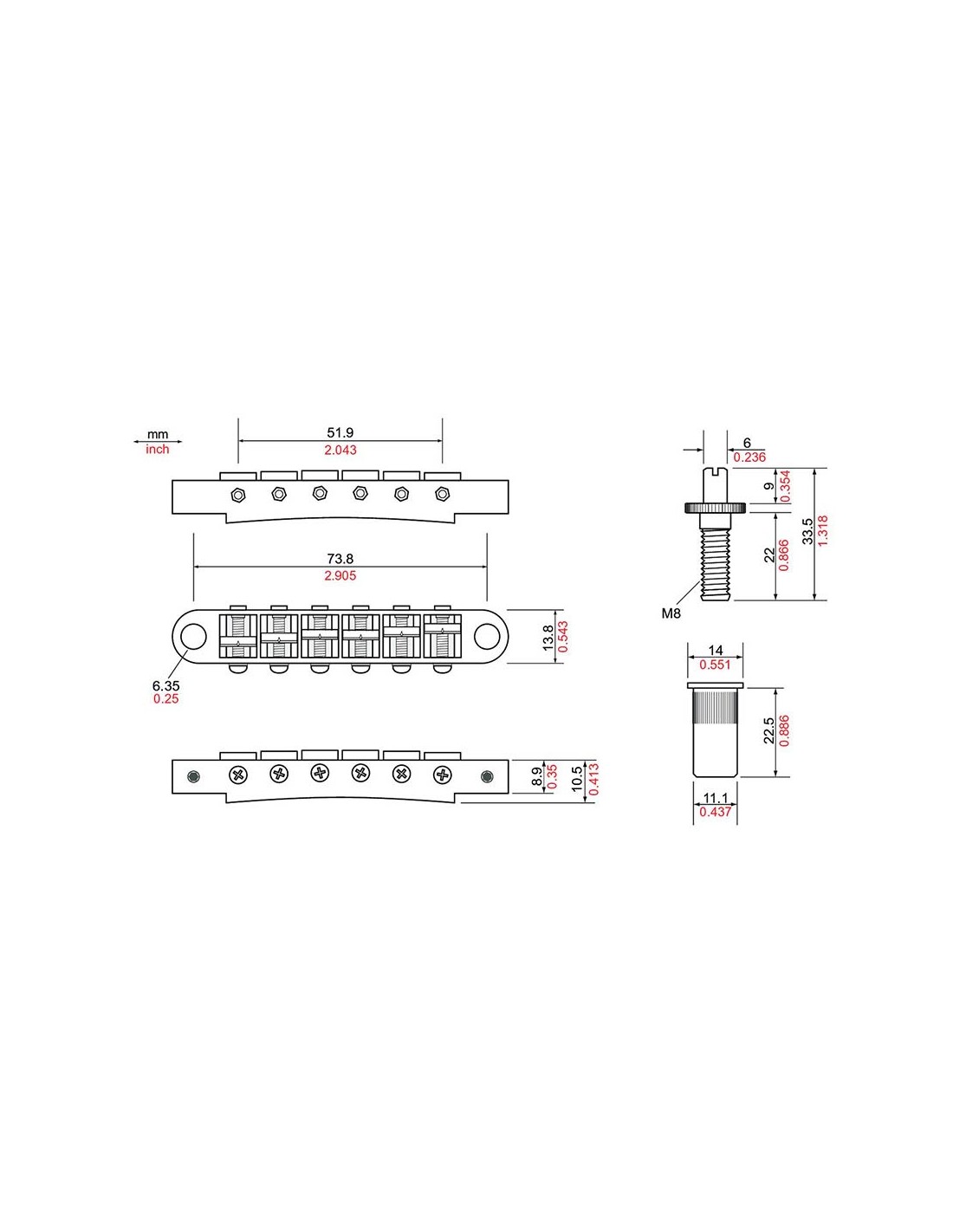 T3BT -tune-o-matic bridge, metric/for import guitars, gold