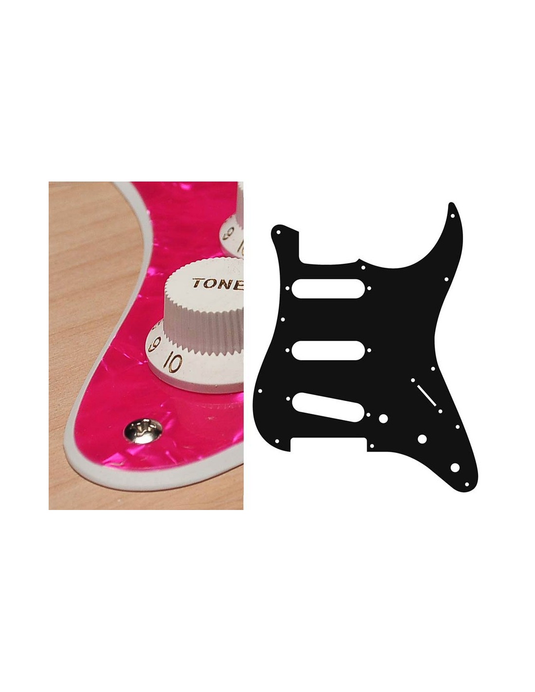 pickguard, Stallion, standard, SSS, 3 pot holes, 3-5 switch, 2 ply, pearl pink
