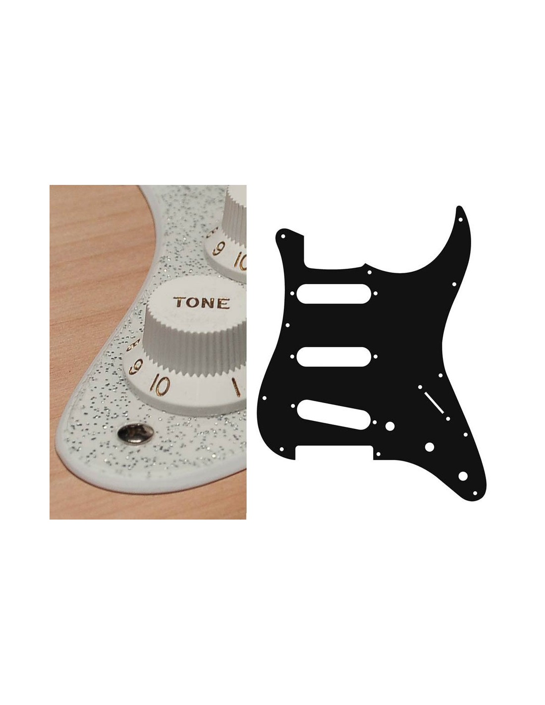pickguard, Stallion, standard, SSS, 3 pot holes, 3-5 switch, 2 ply, sparkling silver