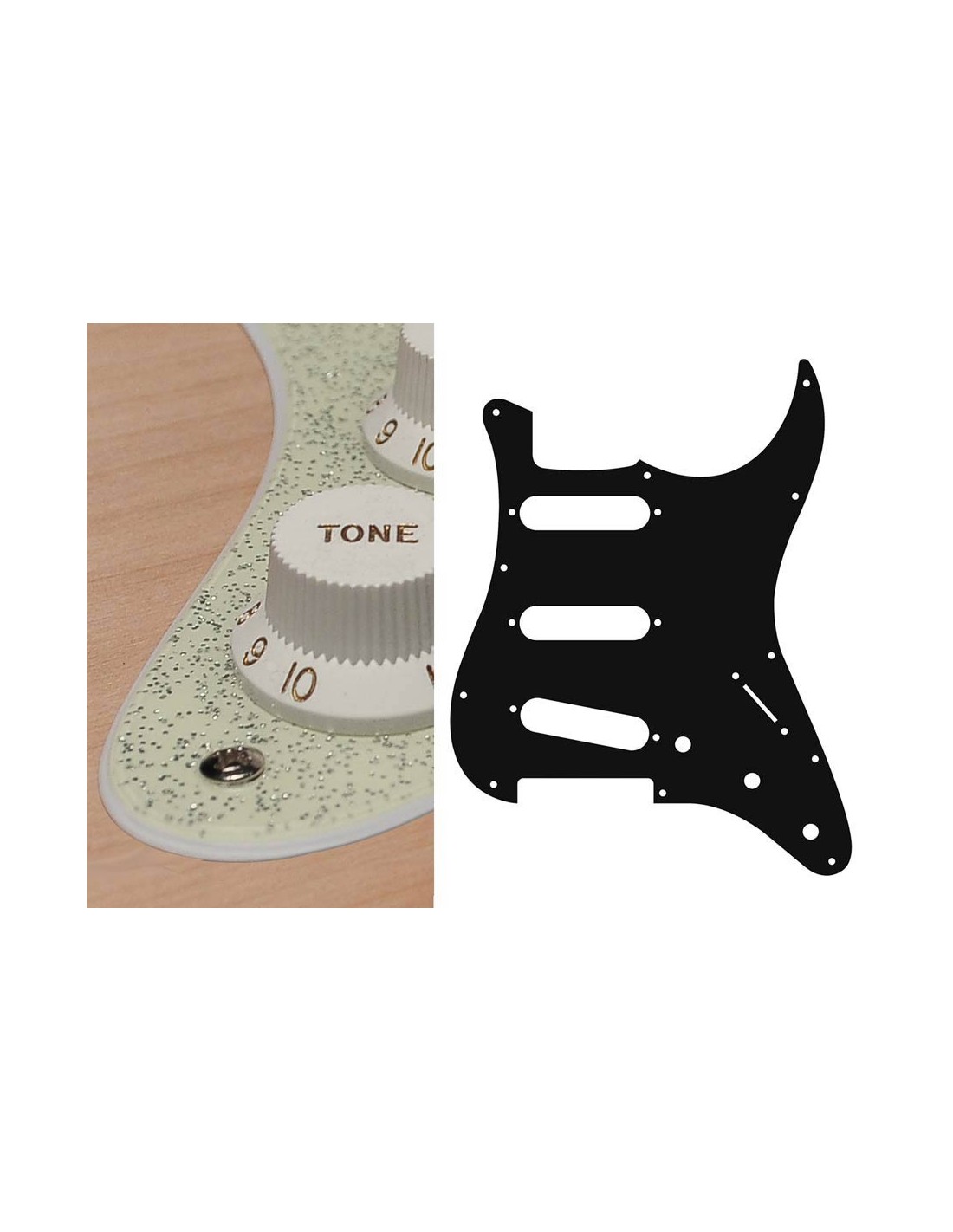 pickguard, Stallion, standard, SSS, 3 pot holes, 3-5 switch, 2 ply, sparkling champagne