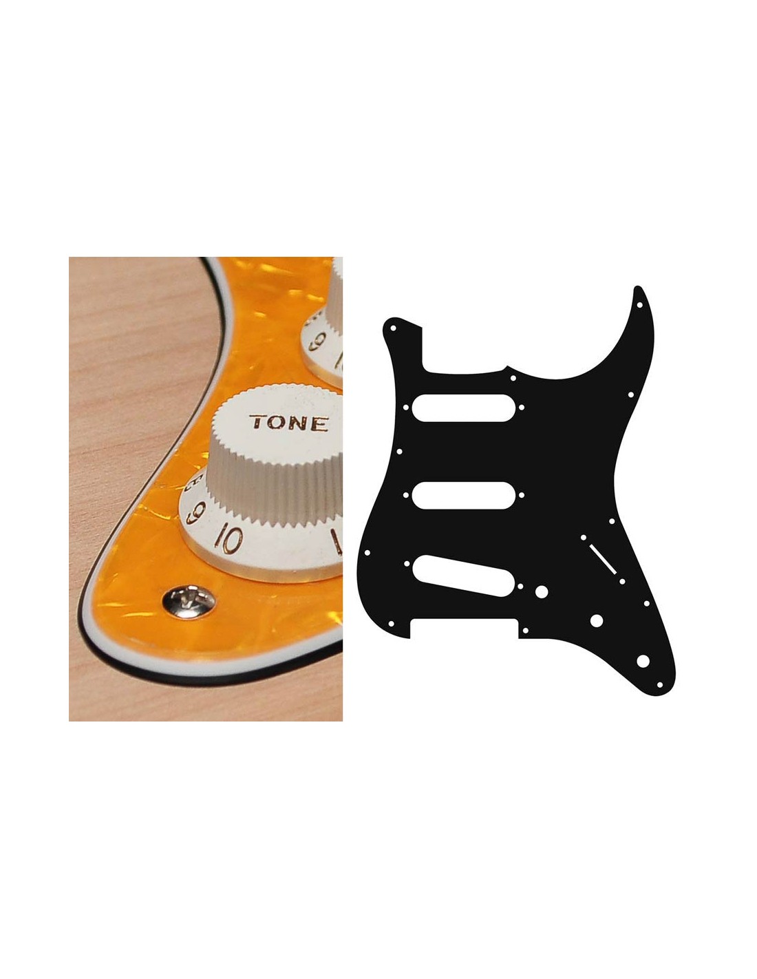 pickguard, Stallion, standard, SSS, 3 pot holes, 3-5 switch, 3 ply, pearl yellow