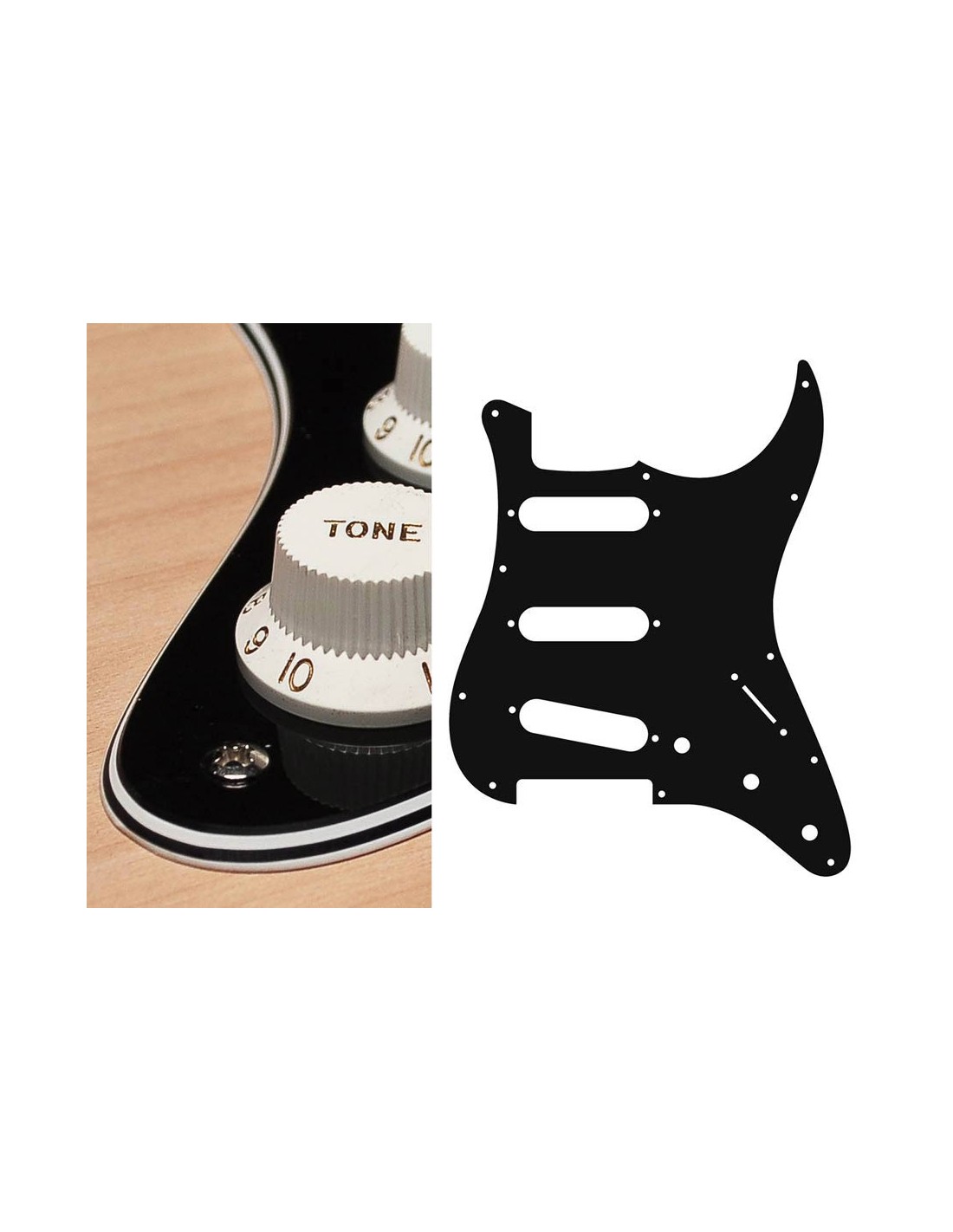 pickguard, Stallion, standard, SSS, 3 pot holes, 3-5 switch, 4 ply, black