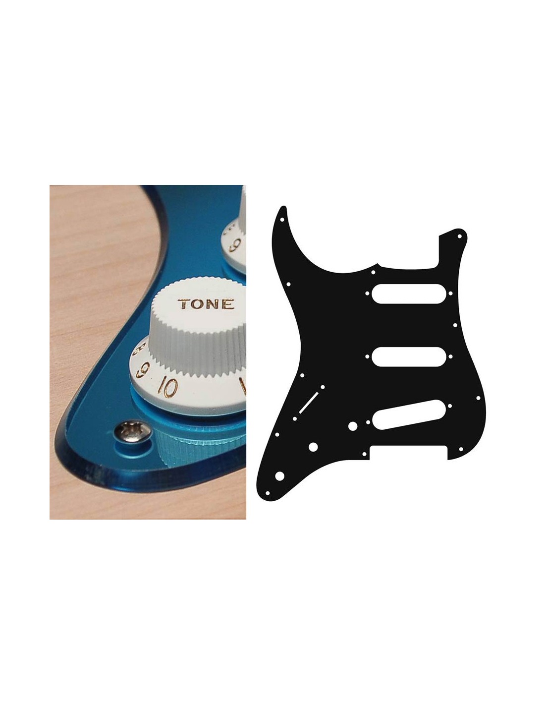 pickguard, Stallion, standard, SSS, 3 pot holes, 3-5 switch, lefthanded, 2 ply, mirror blue