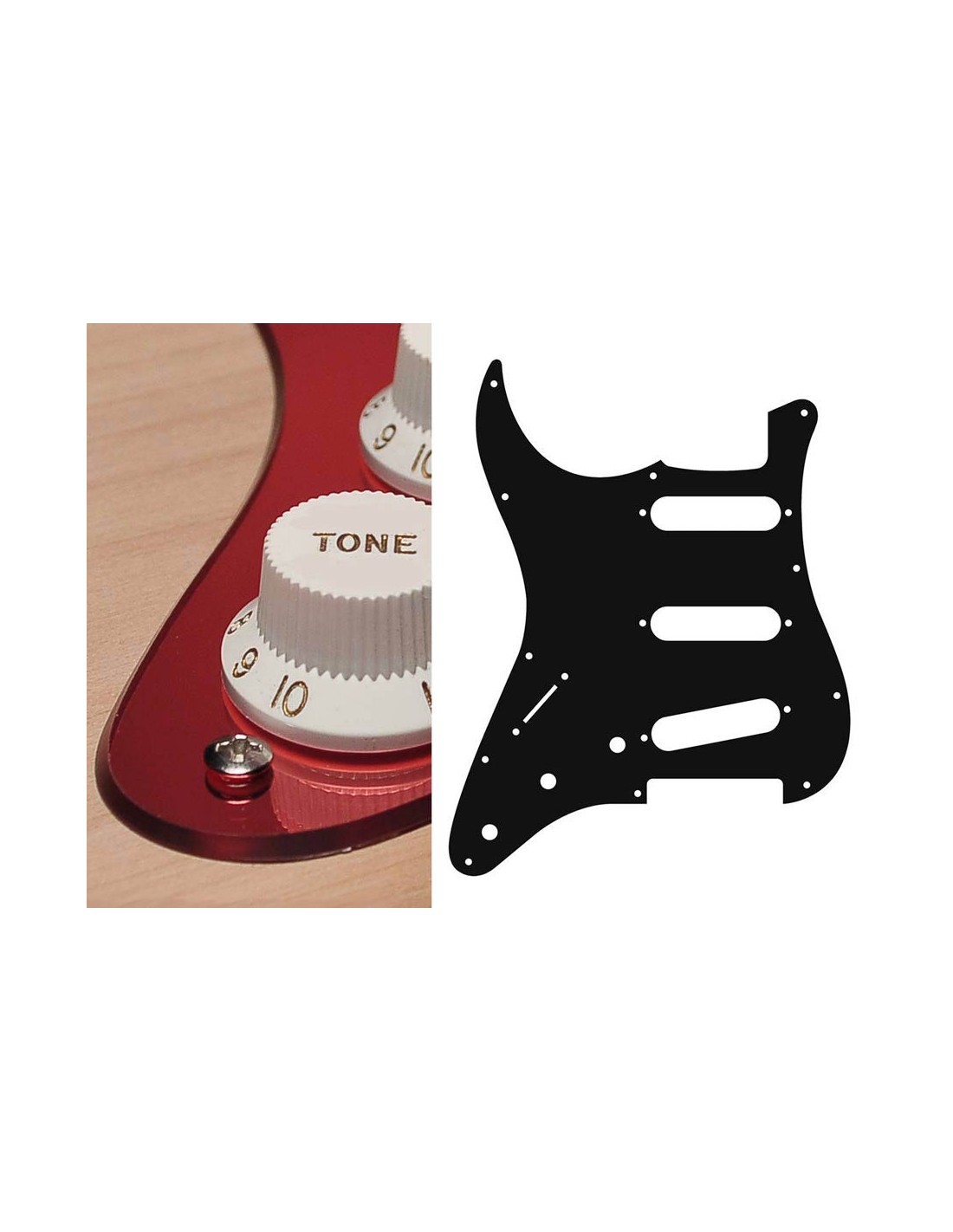 pickguard, Stallion, standard, SSS, 3 pot holes, 3-5 switch, lefthanded, 2 ply, mirror red