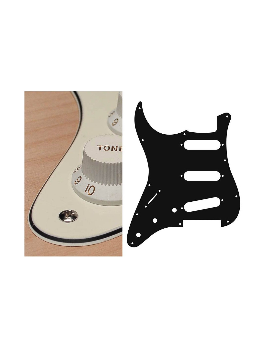 pickguard, Stallion, standard, SSS, 3 pot holes, 3-5 switch, lefthanded, 3 ply, vintage white