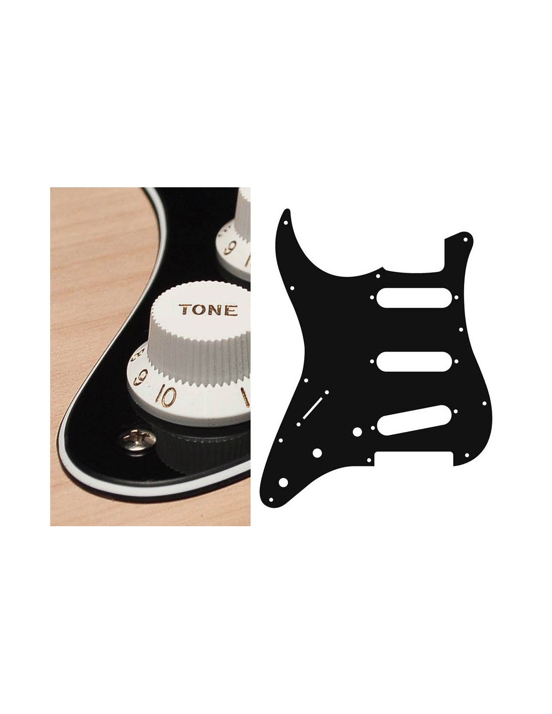 pickguard, Stallion, standard, SSS, 3 pot holes, 3-5 switch, lefthanded, 3 ply, black