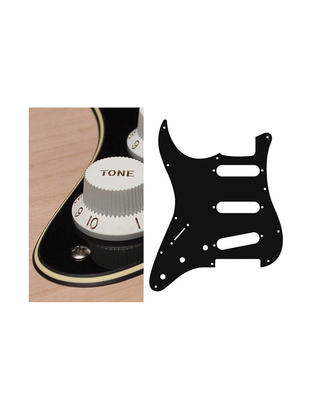 pickguard, Stallion, standard, SSS, 3 pot holes, 3-5 switch, lefthanded, 3 ply, black and cream