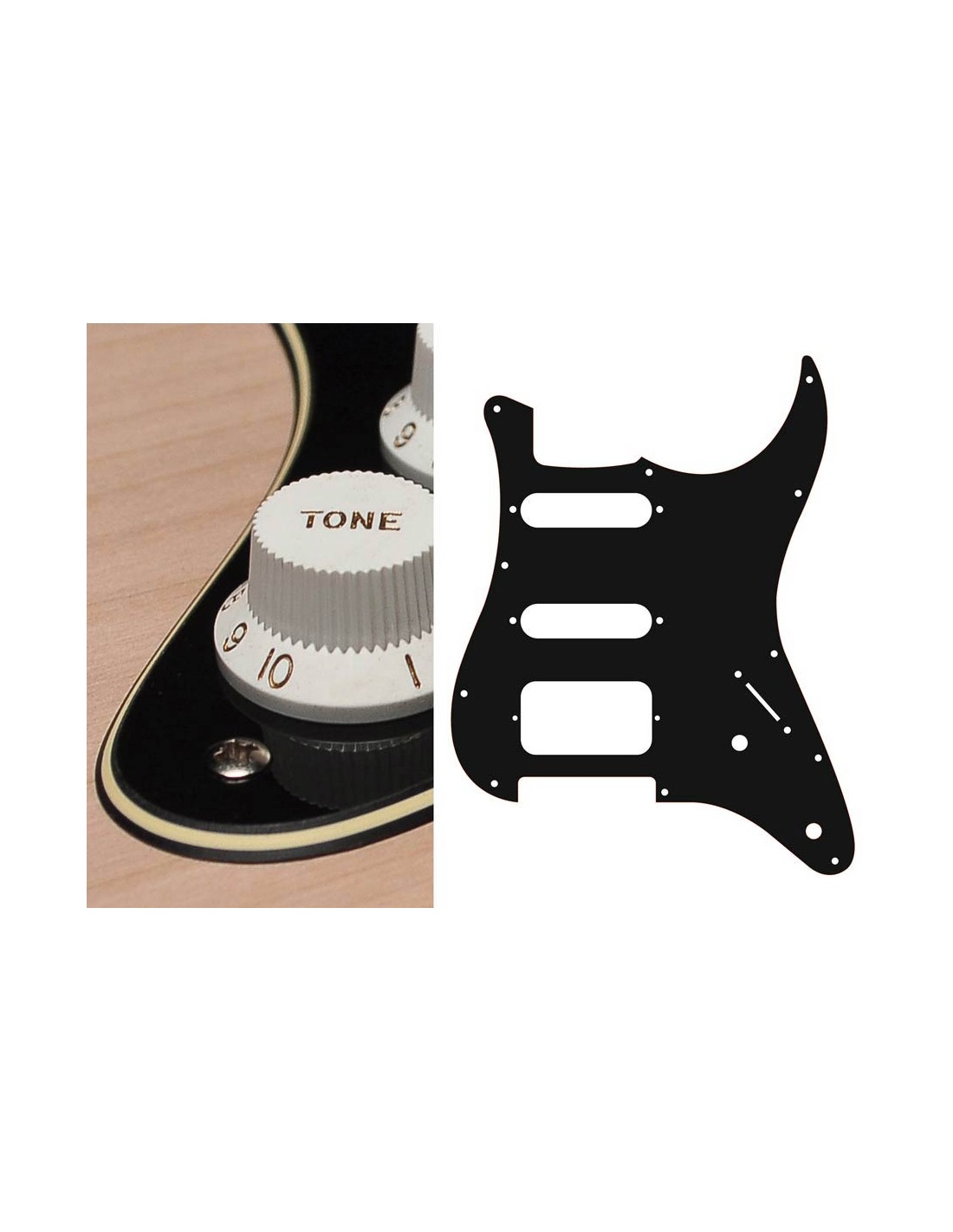 pickguard, Stallion, SSH, 2 pot holes, 3-5 switch, 3 ply, black and cream