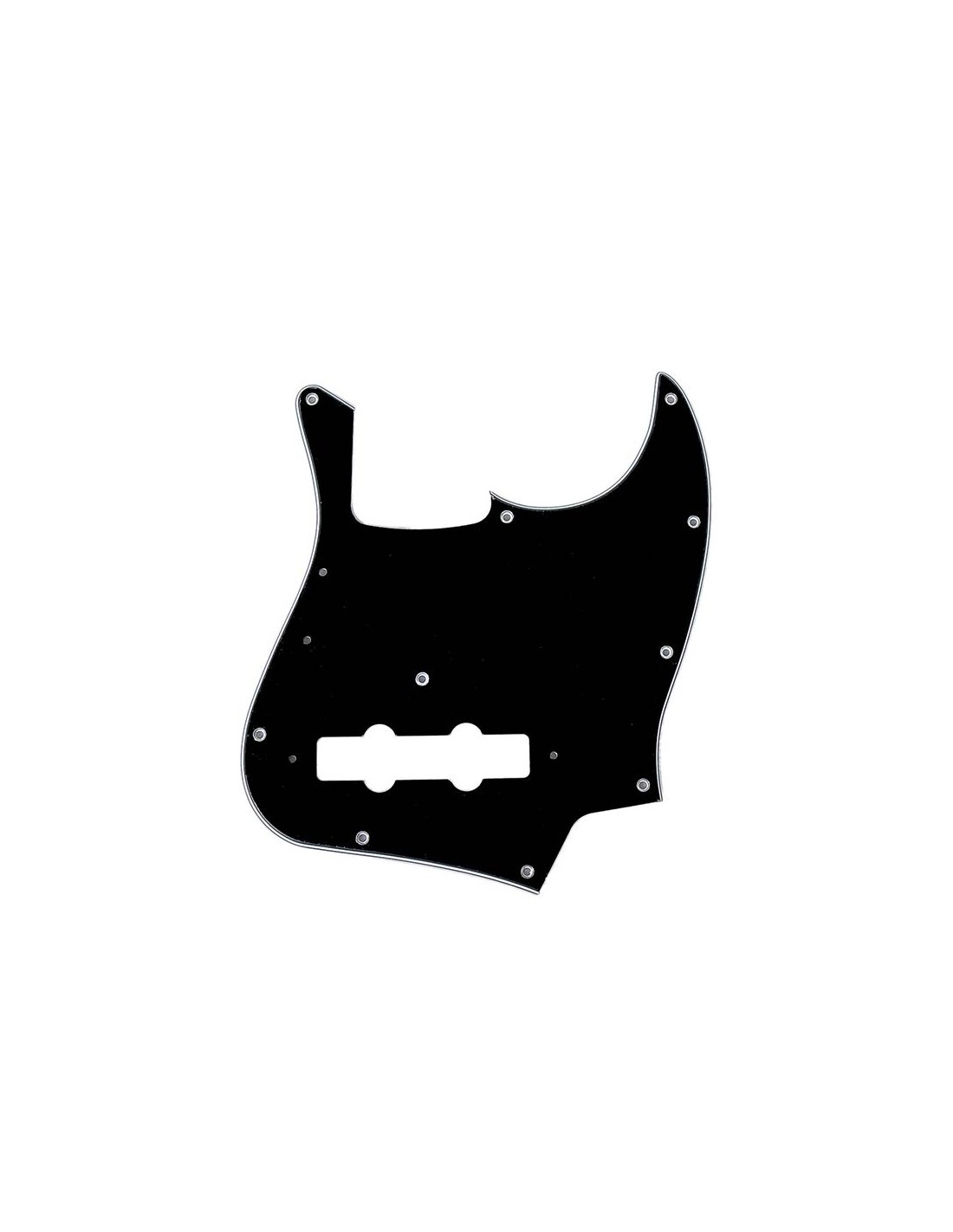 Three-ply vinyl pickguard for most vintage and contemporary 70s-style Jazz Bass guitar models 10 mounting-screw holes Center mounting-screw hole above neck pickup Mounting-screw holes for vintage-style pickup cover and thumb rest