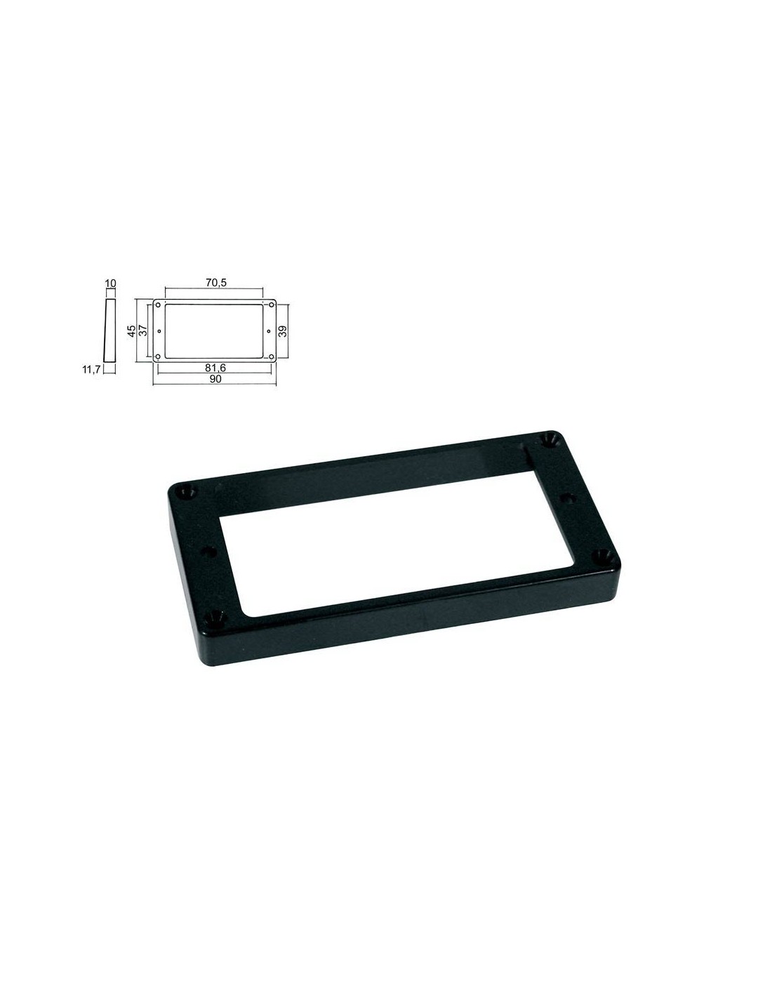pickup ring, humbucker, flat, black, plastic, height: 10,0-11,7mm, high