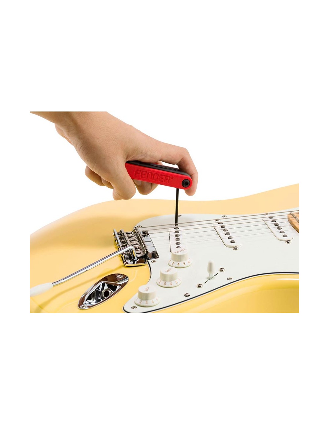 Fender's Guitar & Bass Multi-Tool is a 14-in-1 compact tool designed for use with Fender models as well as virtually any other make or model. Its one-piece body allows for ease of use and rotation while the included truss rod size hex wrenches are ball end for easy access. Featuring standard and metric sizing, this multi-tool serves as a toolbox in your pocket, providing maximum functionality for all of your instrument repair and tech work needs.