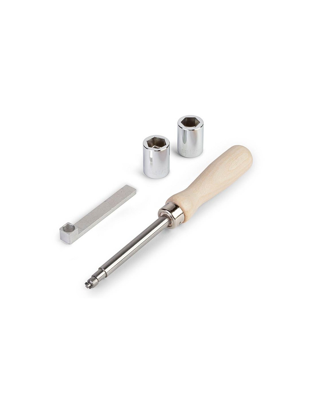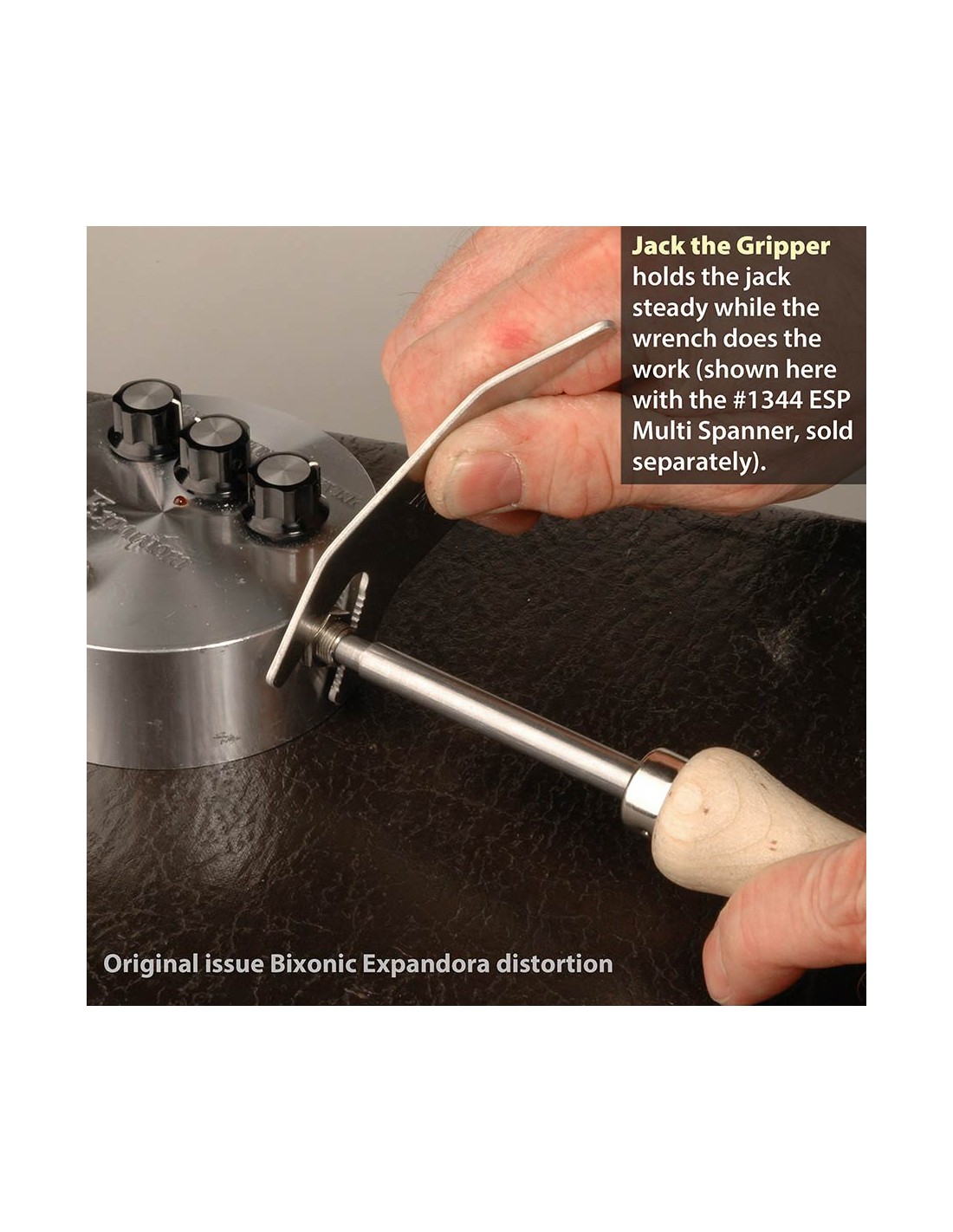 A loose nut on a 1/4" jack is trouble. It's no fun to watch the jack disappear into your guitar or amp as the nut falls off, or to break a solder connection when you tighten the nut and the jack turns with it. Designed by veteran repairman Frank Ford, Jack The Gripper is a smart tool that can save you a lot of time and work. Insert it into the jack, and the knurled cam locks in either direction, to hold the jack firmly while you tighten or loosen the nut.