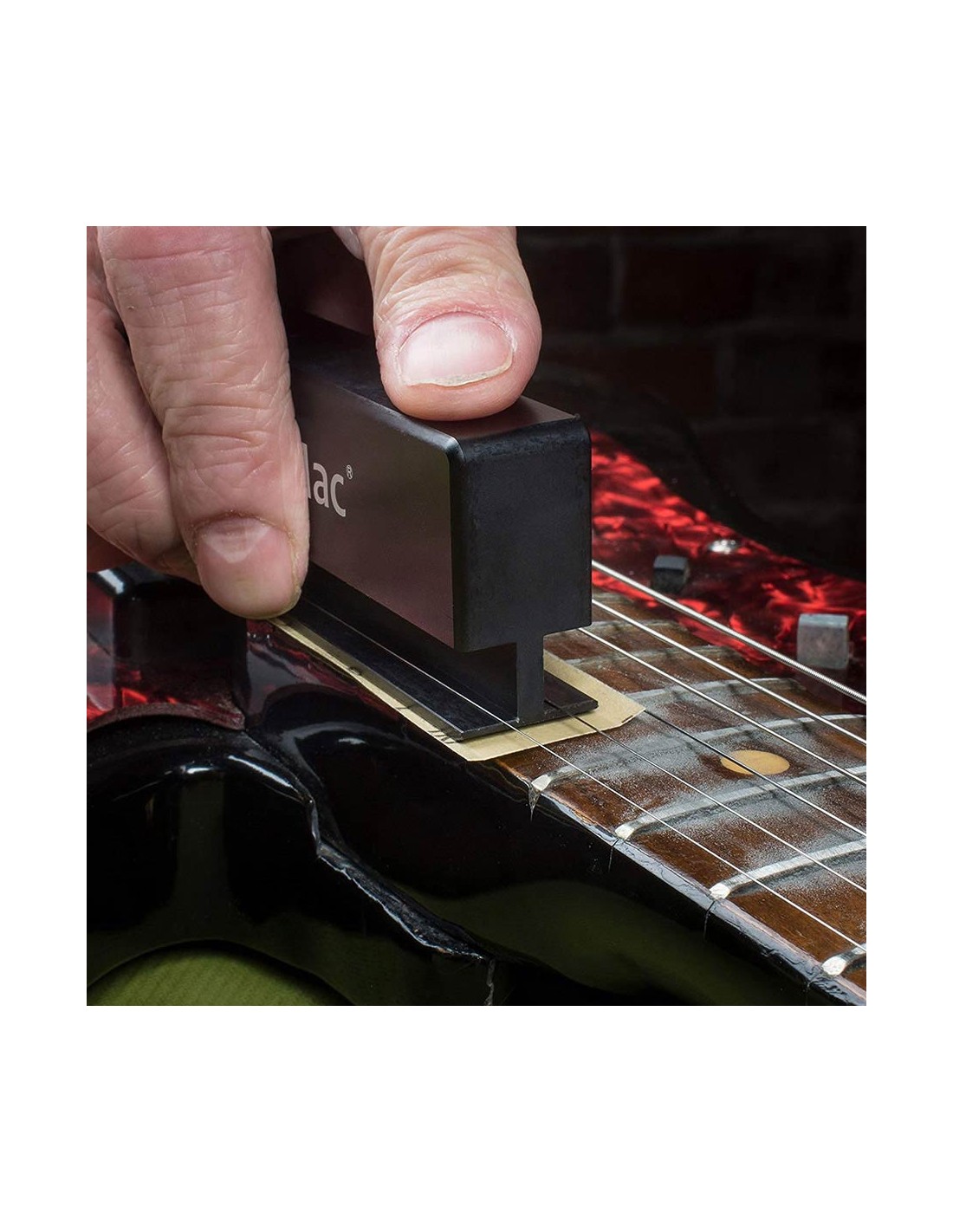 A string jack to use with the Fretbar is included. Put the jack in front of the nut to raise the strings without changing the tension on the neck.