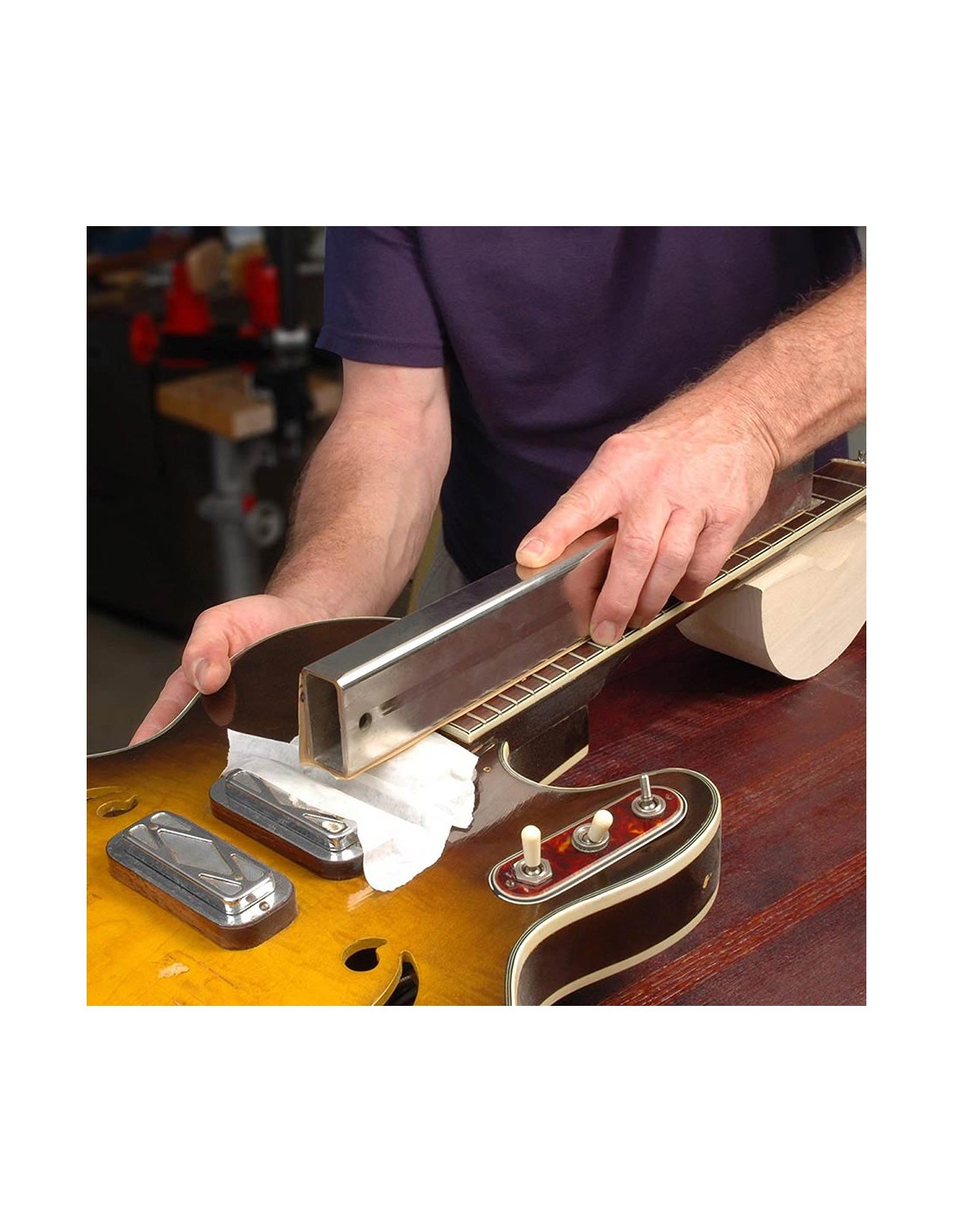 46 cm length makes it easy to level an entire neck. You'll quickly and evenly level most of the frets at the same time, without the added danger of running into the nut, saddle, or hardware.
