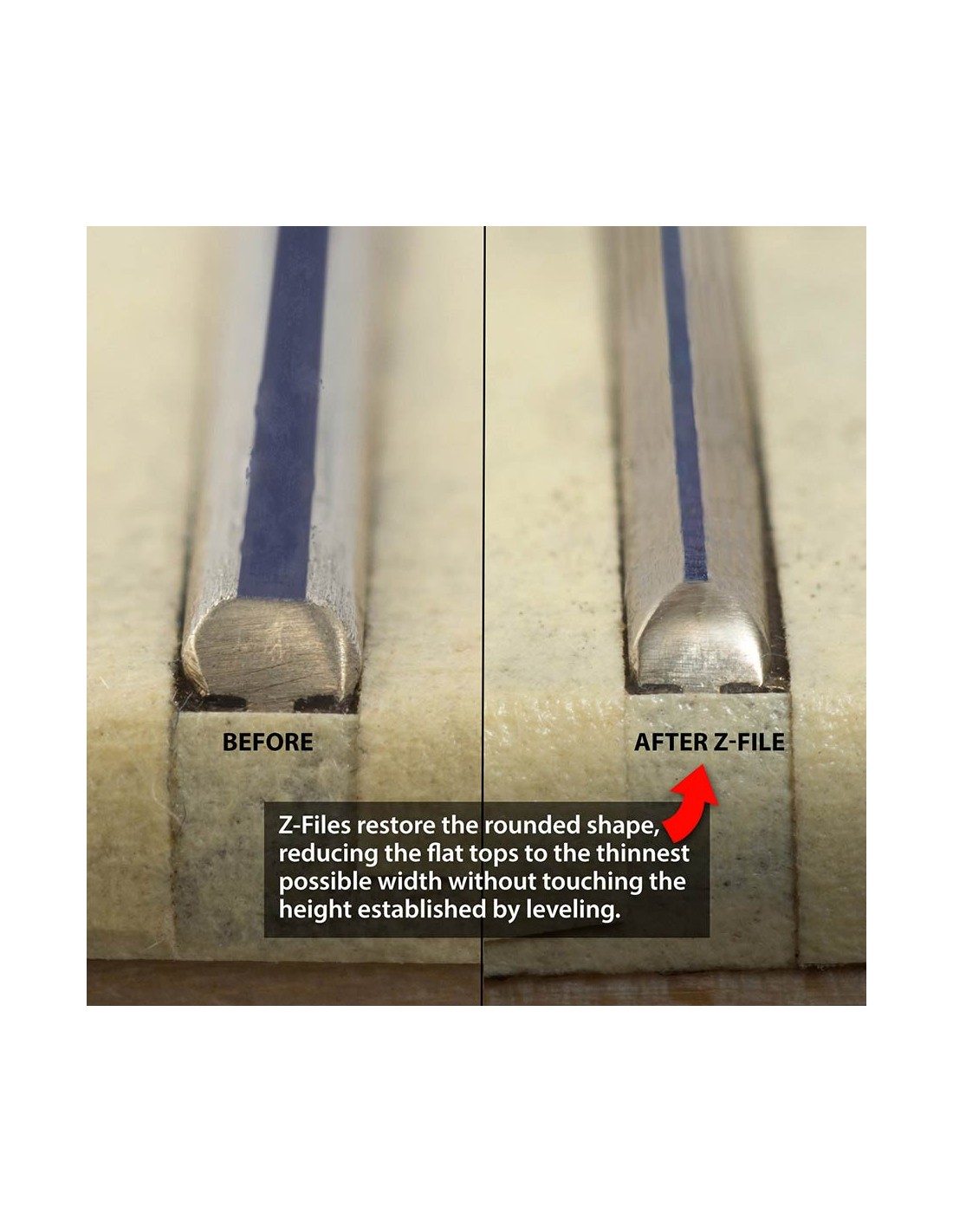 A whole new idea for crowning frets. Z-Files won't mess up your carefully-leveled fret tops because they only touch the sides of the frets.