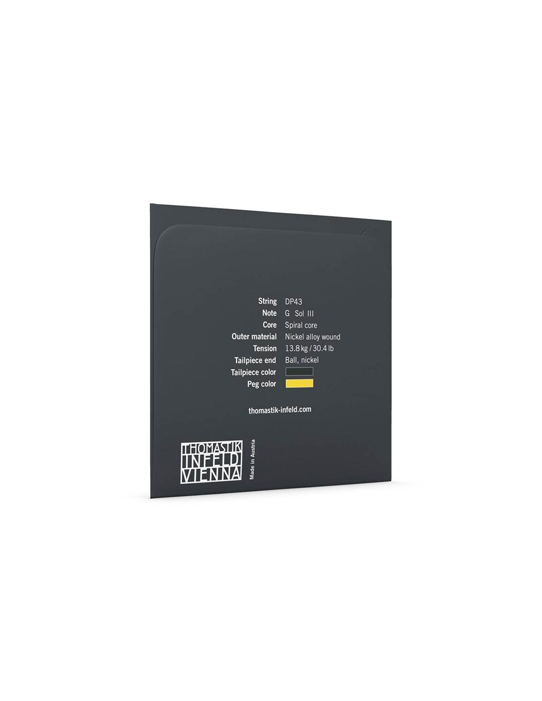 The NO.DP43 G-string has a dark, warm color with a slightly metallic brilliance. Unlike tungsten-wound G-strings, it offers slightly less modulation capacity, but has a very sustaining focus.