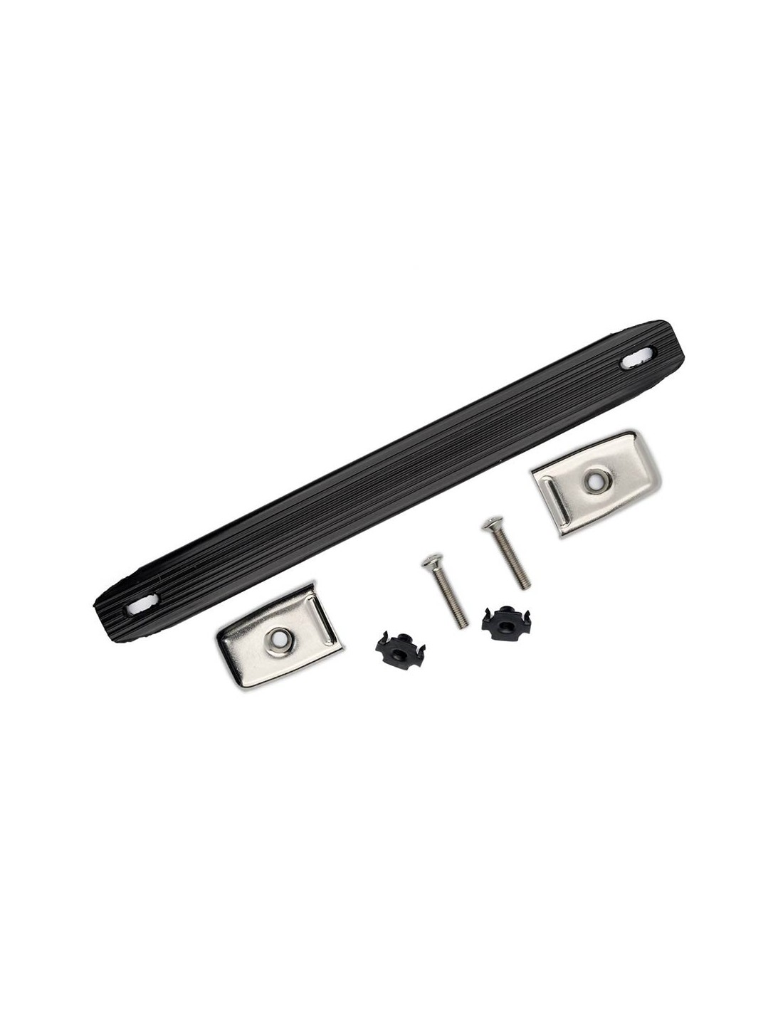 Black or brown amplifier handle with vinyl sleeve over steel strap and one-screw mounting nickel-plated end caps