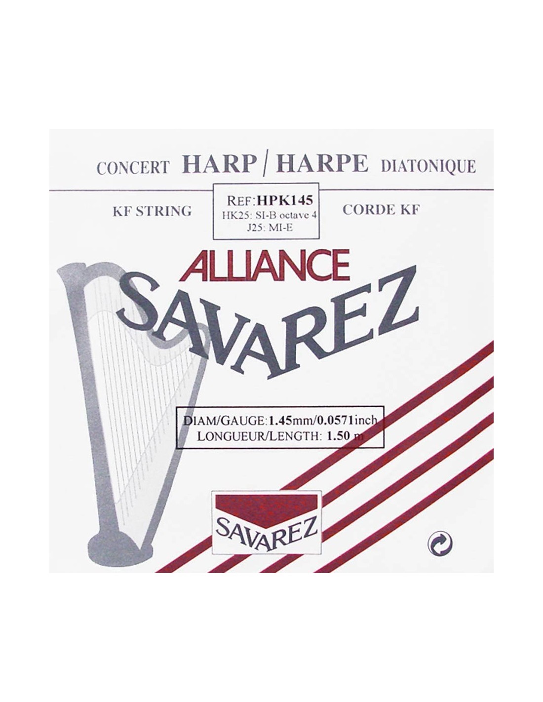 small or concert harp string, plain KF, 1,45mm, length: 1,50 meter