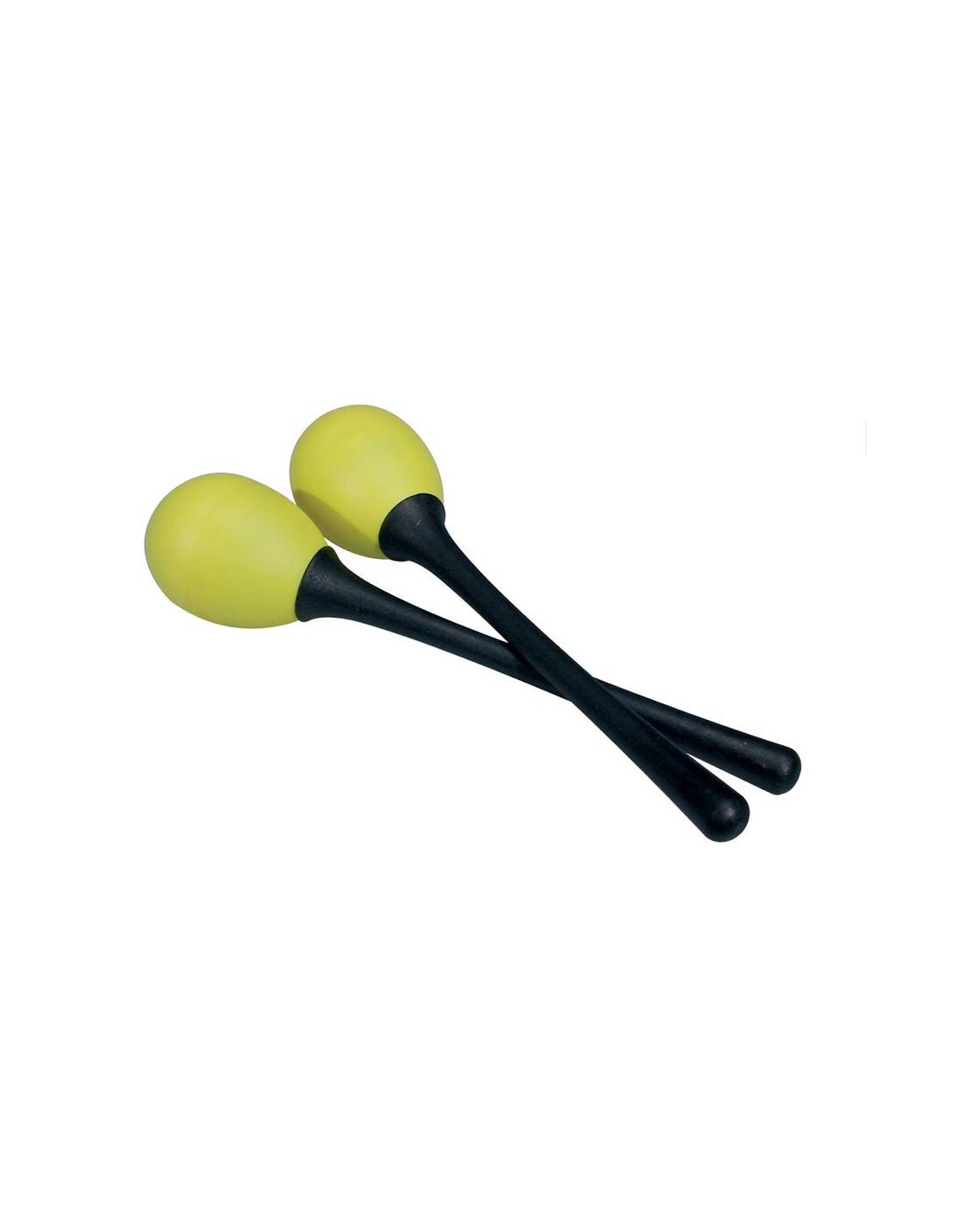 shaker eggs, plastic, pair, with handle, yellow, 45 grams