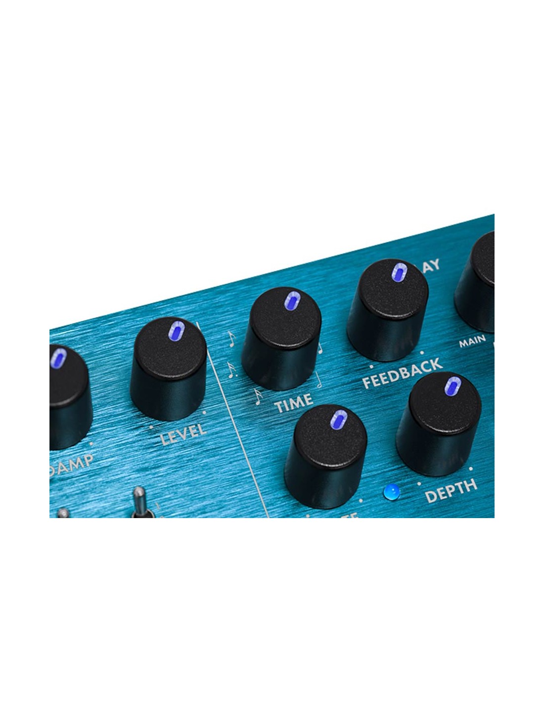 The relationship between time-based effects, like delay and reverb, is critical to operating them correctly. The Reflecting Pool® Delay/Reverb pedal combines these two classic effects into one comprehensive chassis, making it easy to integrate into any pedalboard. Utilizing cutting-edge DSP for rich and complex algorithms, Reflecting Pool® faithfully recreates classic sounds, while also conjuring otherworldly new ones. Type, Variation and Quality controls make it easy to precisely shape your sound, the Time toggle adds rhythmic subdivisions, and the Tap Tempo footswitch makes sure everything stays in time.