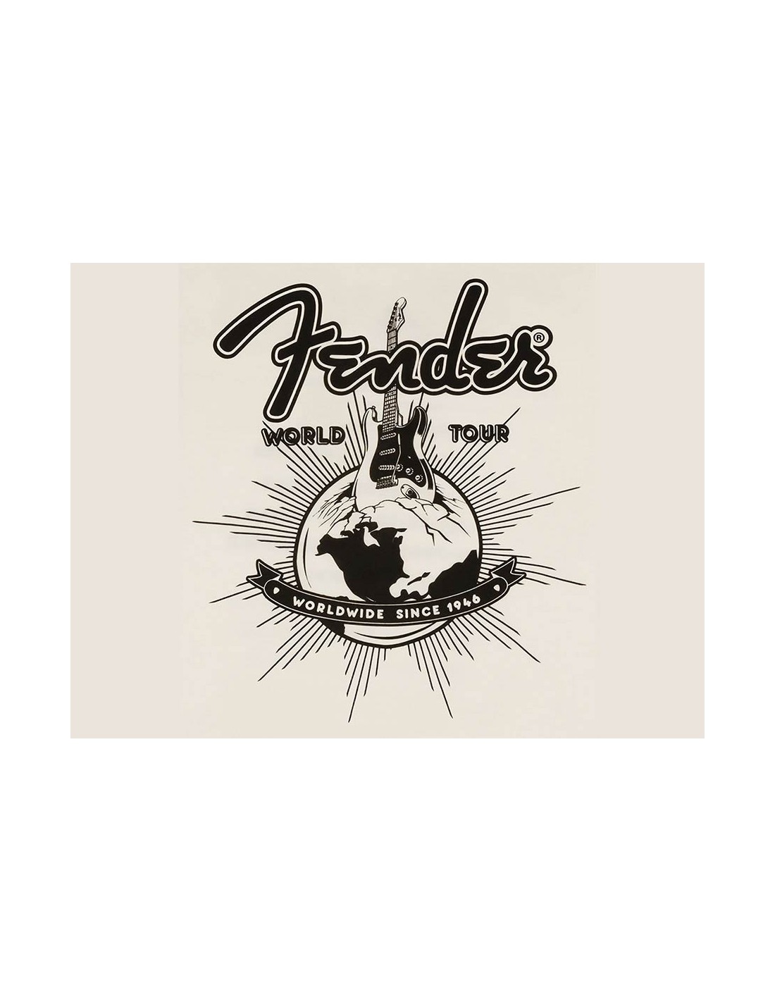 Fender's® world tour is about to begin with this throwback tour t-shirt. In vintage white, with iconic Fender® release dates on the back you will feel part of our rich legacy. Starting in 1947 with the release date of our famous Princeton® classic tweed amplifier and ending the tour in 1966 with the release date of our celebrated 1964 Mustang® bass guitar. What a journey it has been!