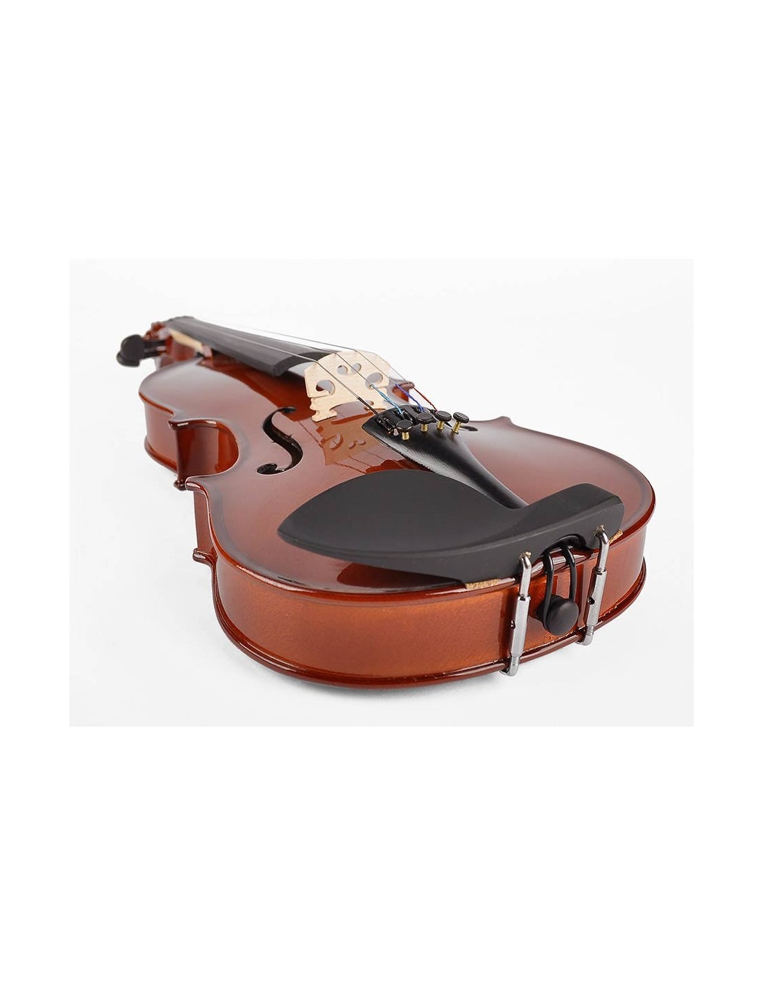 violin outfit 1/2, all solid, nitro varnish, blackened hardwood fittings, finetuner tailpiece, case