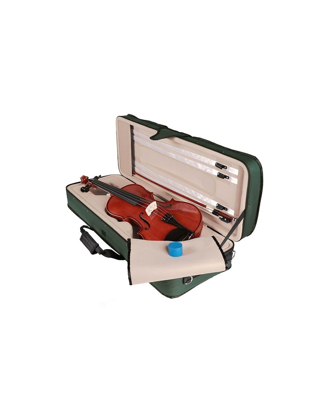 It is fitted with ebony pegs, fingerboard, teka chinrest and finetuners tailpiece.