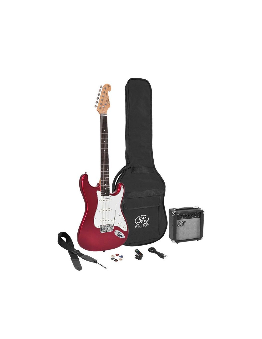 ST style electric guitar pack, 10W amp, bag, tuner, strap, cable & 6 picks, candy apple red