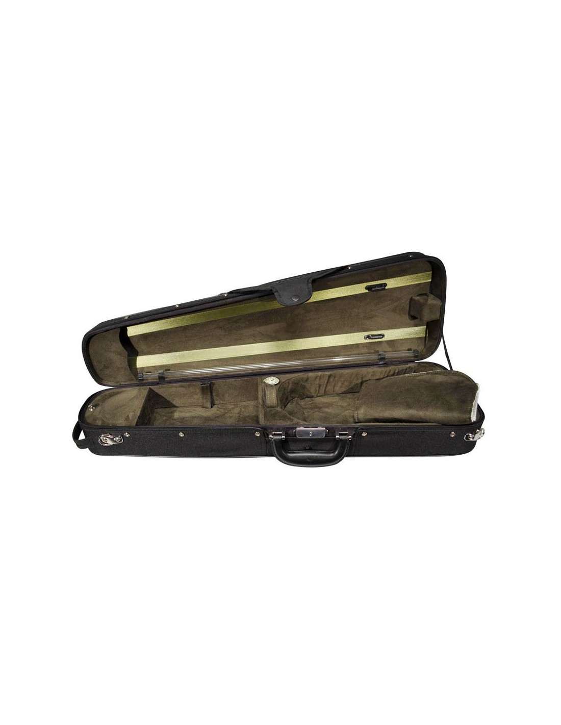1400 series violin cases. shaped wooden case with music pocket. Case cover made of cordura fabric. Interior in suede fabric. Full lining. Suspension foam. Two bow holders. 1 accessory box. Protection blanket. Weight appr. 2,4 kgs.
