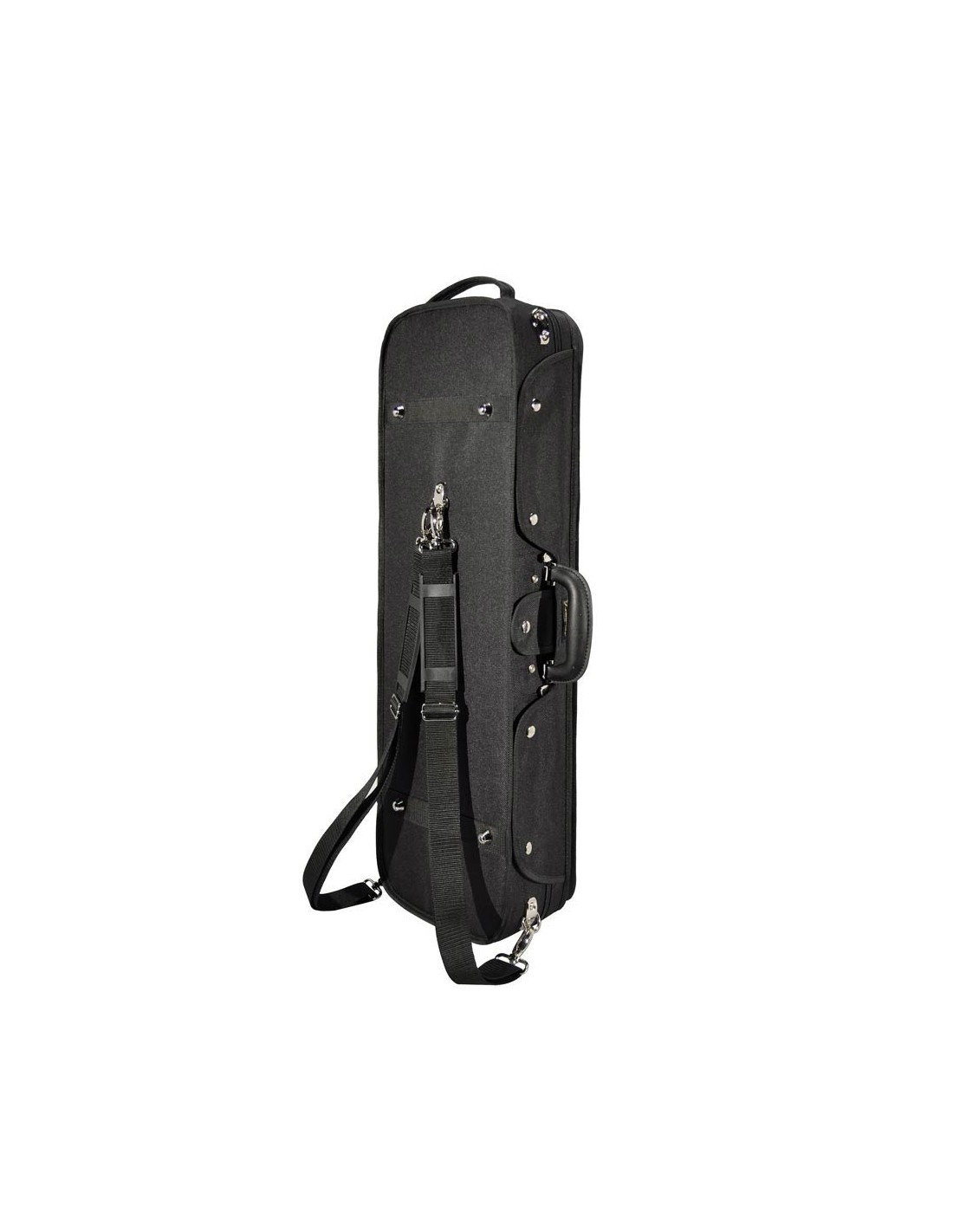 violin case 4/4 oblong, wood, 2 straps, black, red suede fabric interior, YKK zipper