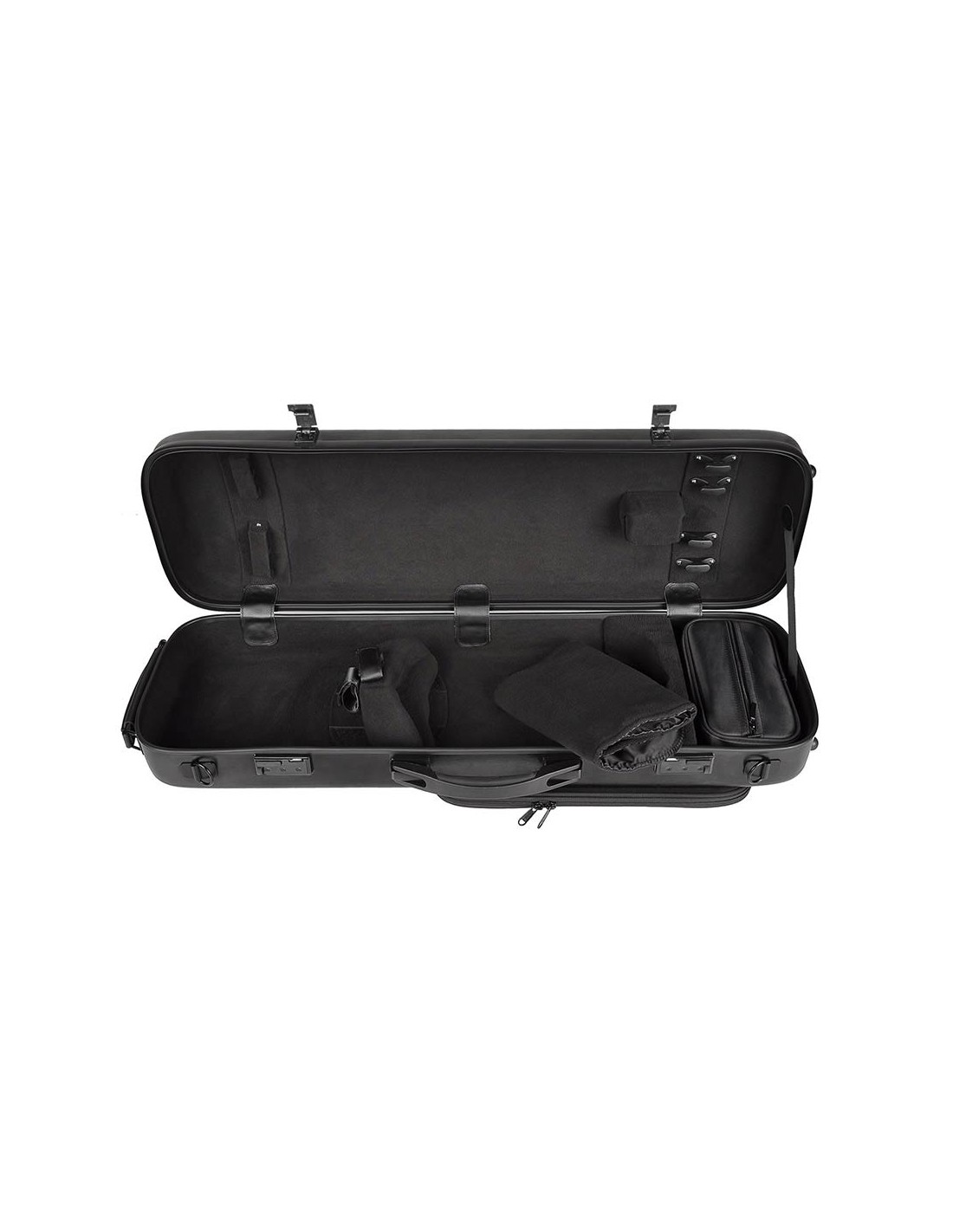 The VC-50 is a sturdy violin case with a compact design that provides good insulation against temperature differences and humidity. The case is suitable for violins of sizes 1/2 to 4/4. It is equipped with no less than 4 bowholders and has a removable accessory bag, which is very useful when the suitcase is left behind in the dressing room. The VC-50 comes with a protective cloth to put on the violin for extra protection. On top of all that, the VC-50 has an external pocket for sheet music, numerical locks and comfortable straps (VC-STRAP), a spring handle and a so-called subway handle for the standing position.