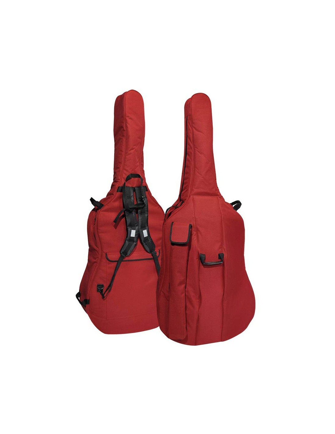 double bass bag 1/2, wine red, 19mm soft padding, 2 straps, various accessory pockets